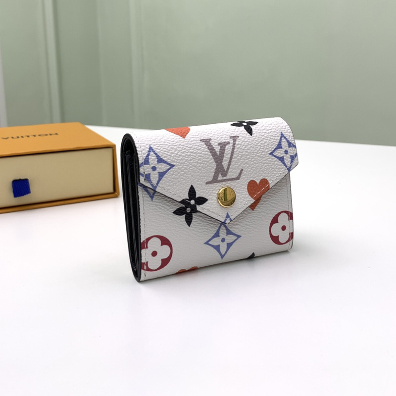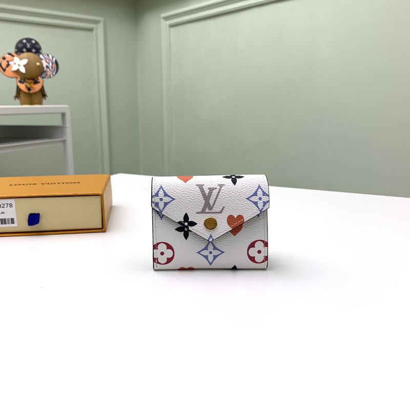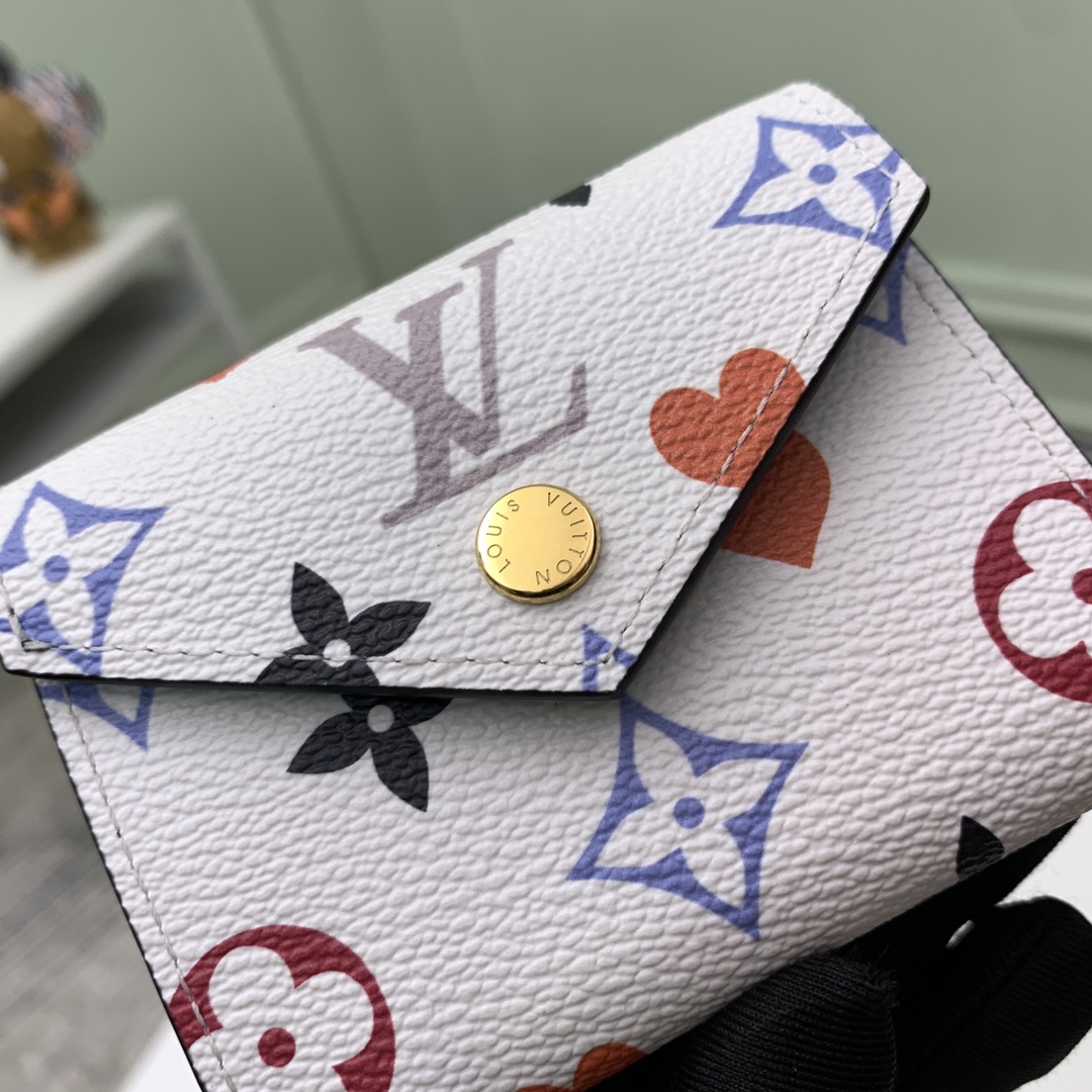 ルイ・ヴィトンのアーティスティック・ディレクターであるニコラ・ジェスキエールが、2021クルーズ・コレクションのためにデザインした「ゲーム・オン キャンバス」で仕立てた、コンパクトな「ポルトフォイユ・ゾエ」。トランプカードから着想を得たポップなカラーとハートのモチーフで、モノグラム・パターンを大胆に再解釈しました。プレタポルテ、シューズ、アクセサリー、そしてレザーグッズにわたって展開する「ゲーム・オン」シリーズの一部です。