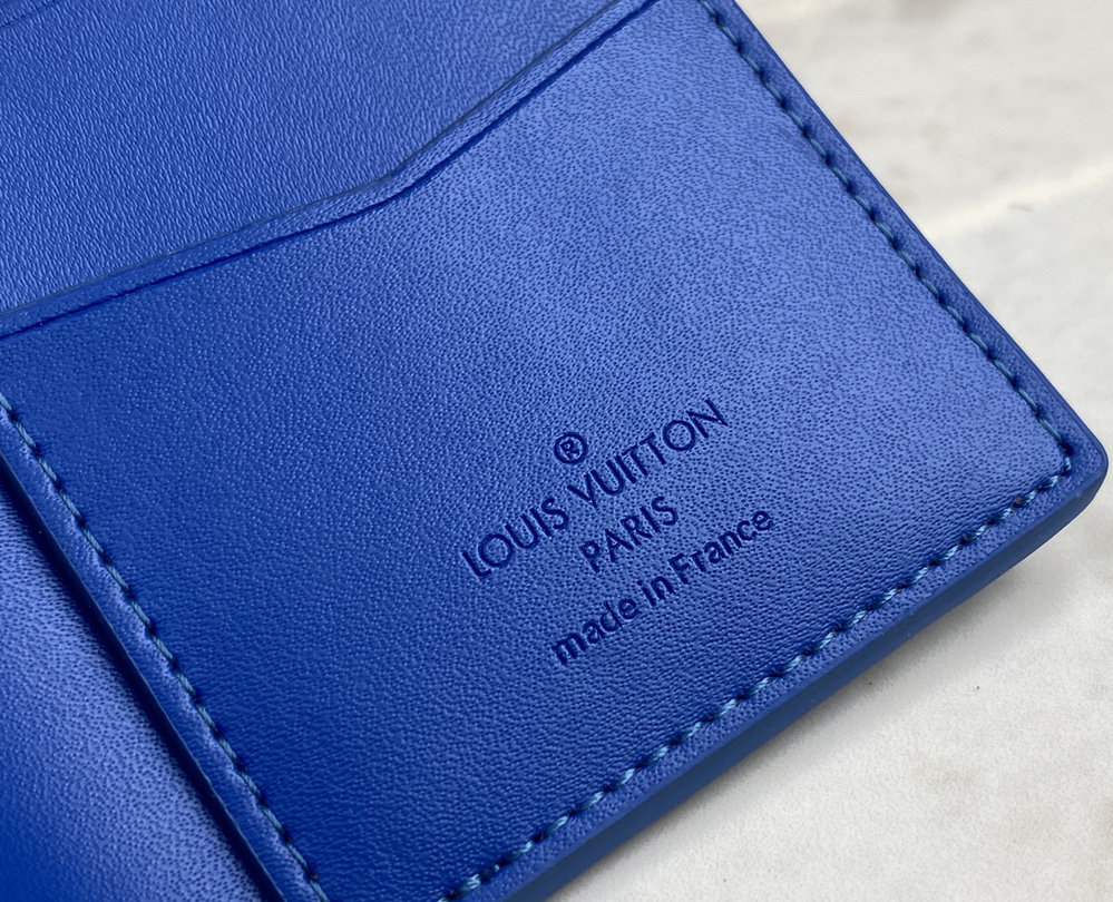 目を引く深みのあるブルーに染色した、しなやかなトリヨンレザー。