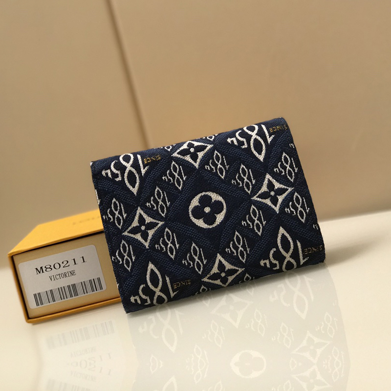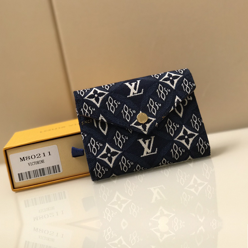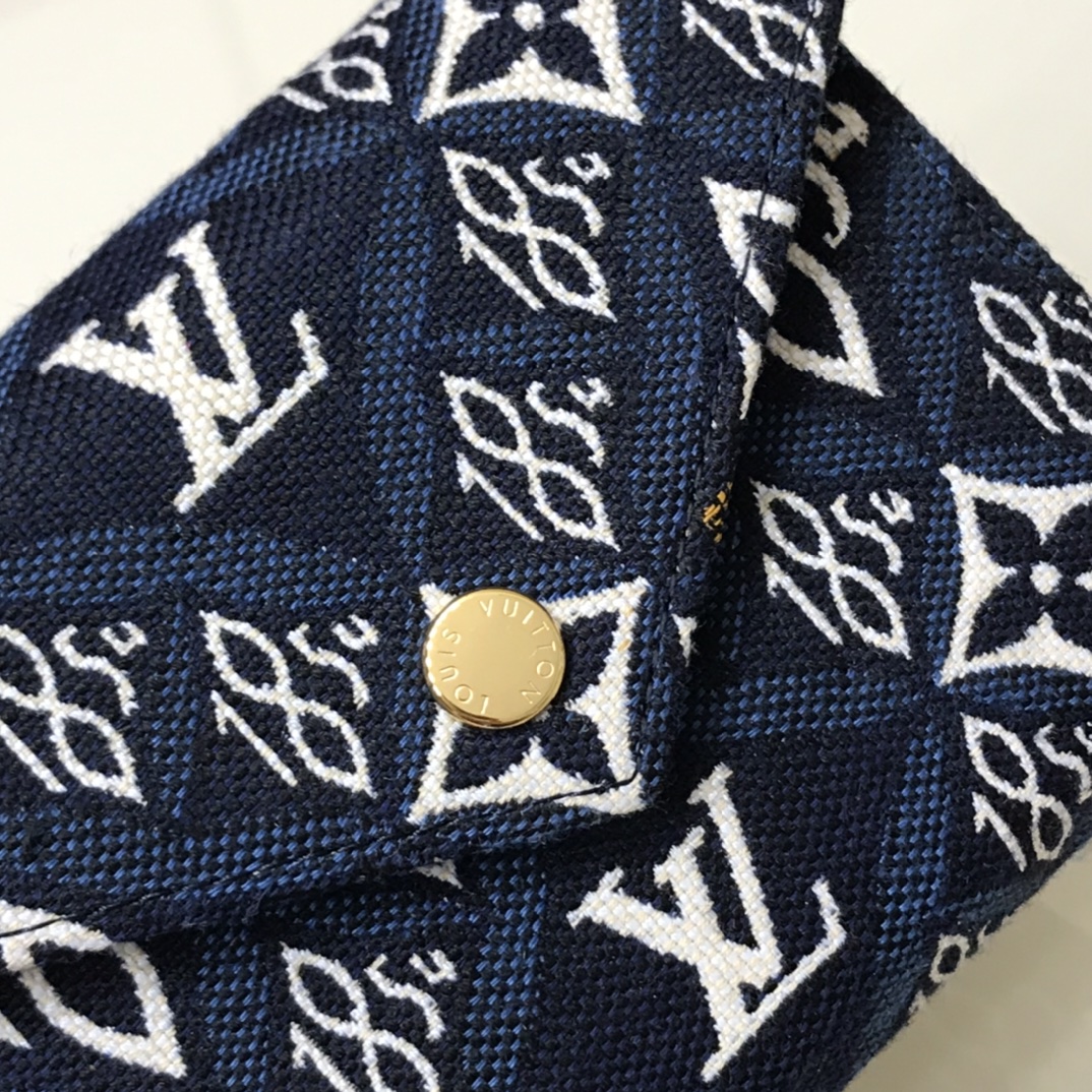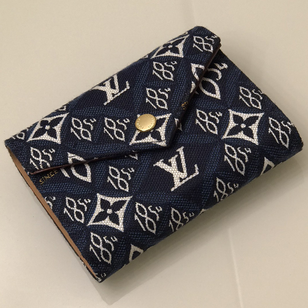 アクセサリー、レザーグッズ、プレタポルテに横断的に展開する「Since 1854」コレクションの1つ「ポルトフォイユ ヴィクトリーヌ」。ブルーのジャカード生地にはモノグラム フラワー モチーフをあしらい、ルイ ヴィトンの創業年を意味する「1854」の数字を添えました。さりげないヴィンテージ感が漂う素材で、エンヴェロップ型のフラップスタイルに仕上げたコンパクトな財布です。