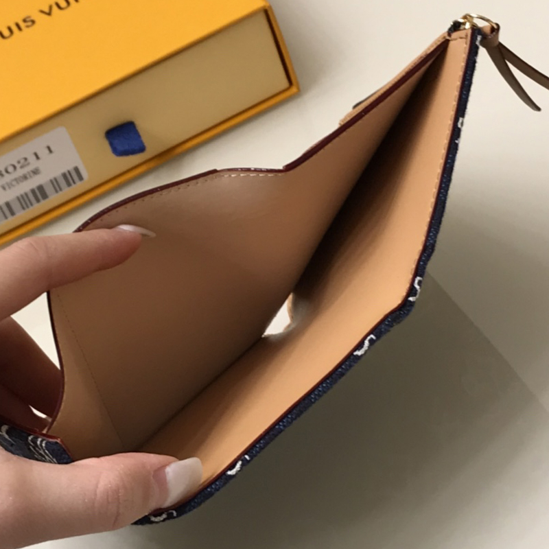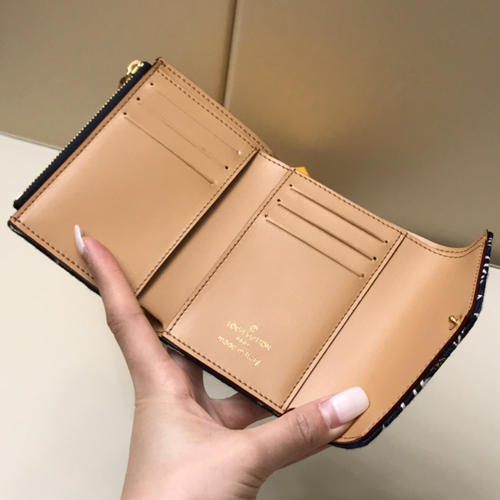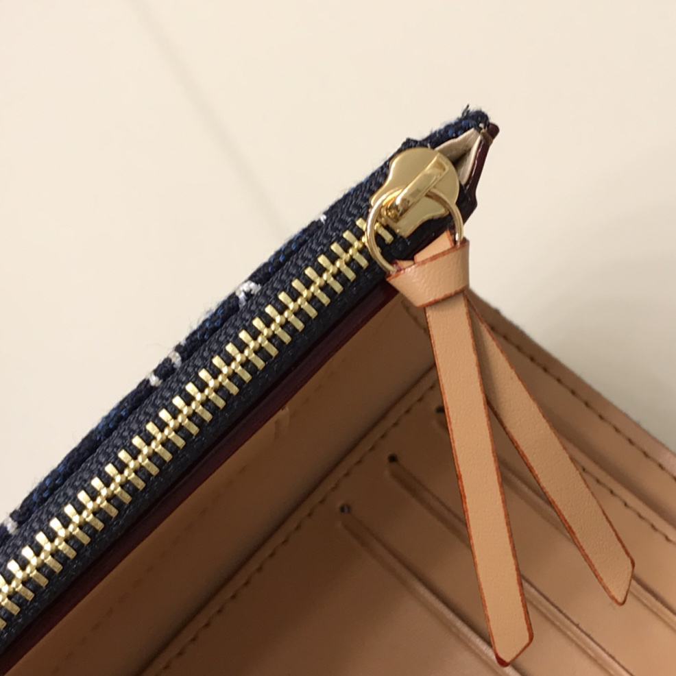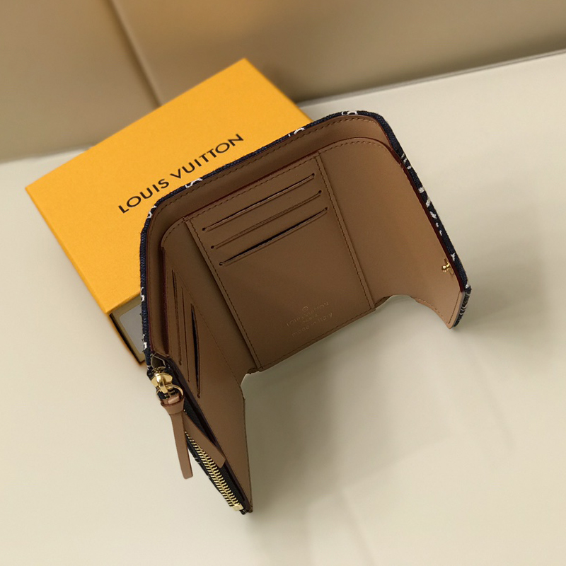 アクセサリー、レザーグッズ、プレタポルテに横断的に展開する「Since 1854」コレクションの1つ「ポルトフォイユ ヴィクトリーヌ」。ブルーのジャカード生地にはモノグラム フラワー モチーフをあしらい、ルイ ヴィトンの創業年を意味する「1854」の数字を添えました。さりげないヴィンテージ感が漂う素材で、エンヴェロップ型のフラップスタイルに仕上げたコンパクトな財布です。