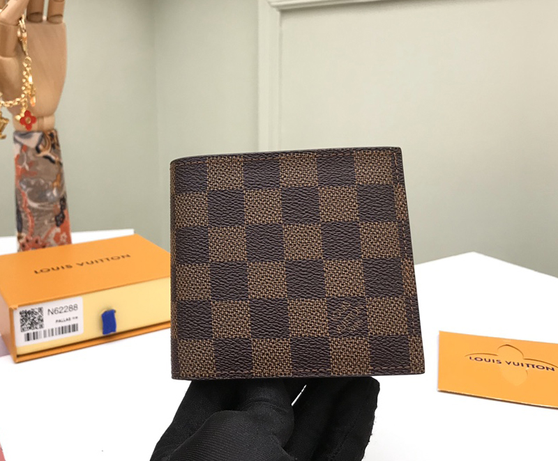 しなやかなダミエ・レザーを使用した財布「ポルトフォイユ・マルコ NM」は、ポケットにすっきり収まる機能的なスクウェア型で、カードや紙幣、コインなどをスマートかつエレガントに携帯することができます。
