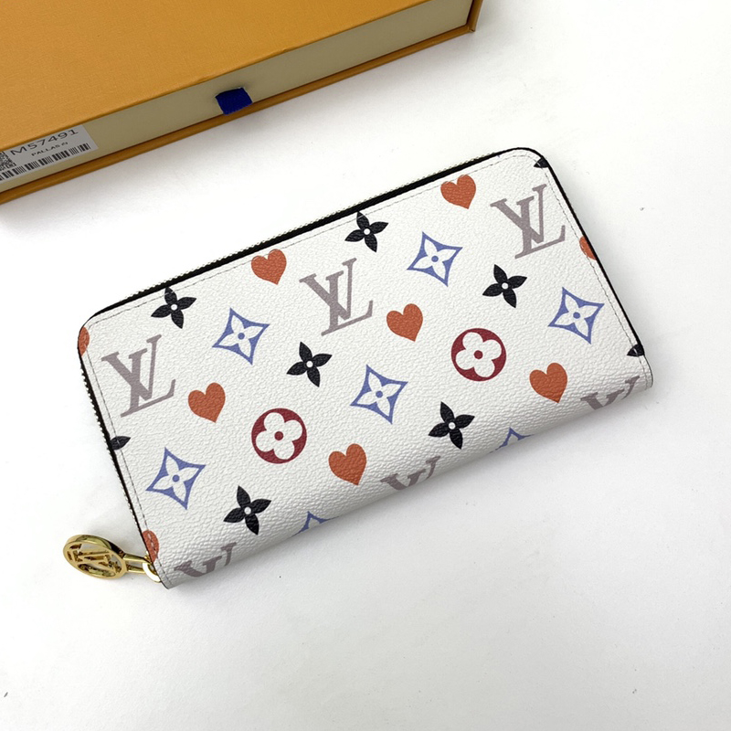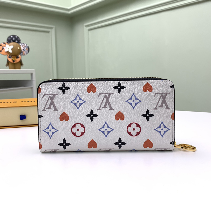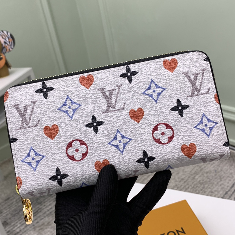 2021クルーズ・コレクションで披露された「ゲーム・オン」コレクション──レザーグッズ・コレクションからプレタポルテ、シューズ、そしてアクセサリーまで、ルイ・ヴィトンのアーティスティック・ディレクターであるニコラ・ジェスキエールがメゾンのモノグラム・パターンを大胆にアップデートしました。ポップなカラーに塗り替え、モノグラム・フラワーをハートのシンボルに置き換えた新たなゲーム・オン キャンバスで仕立てた、スペシャルエディションの「ジッピー・ウォレット」です。