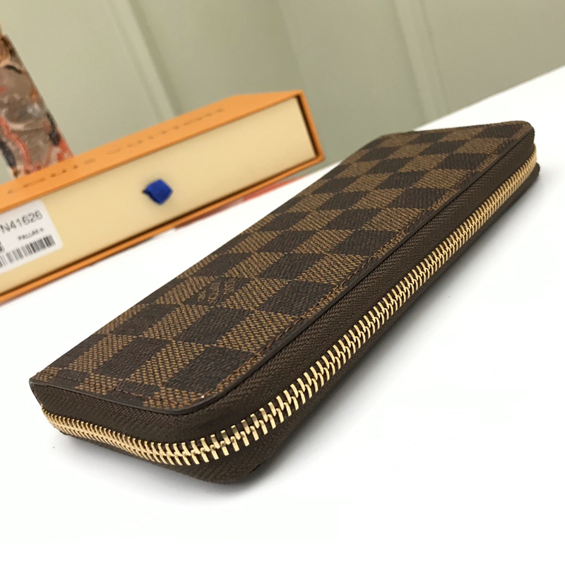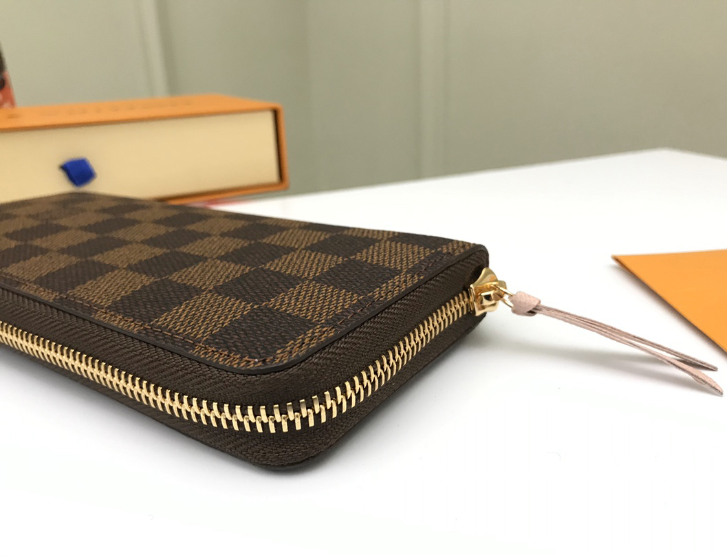 コンパクトながらも収納力抜群なスマートで機能的なダミエ・キャンバスの財布「ポルトフォイユ・クレマンス」。鮮やかな色合いのライニングとレザーファスナープルにより、遊び心あるフェミニンさをもたらします。