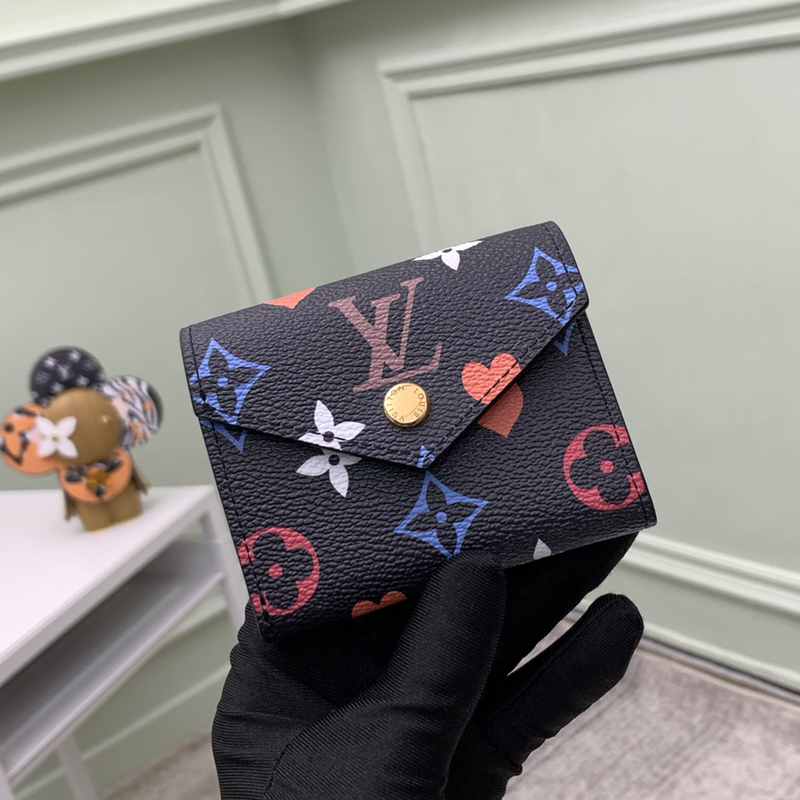 ルイ・ヴィトンのアーティスティック・ディレクターであるニコラ・ジェスキエールが、2021クルーズ・コレクションのためにデザインした「ゲーム・オン キャンバス」で仕立てた、コンパクトな「ポルトフォイユ・ゾエ」。トランプカードから着想を得たポップなカラーとハートのモチーフで、モノグラム・パターンを大胆に再解釈しました。プレタポルテ、シューズ、アクセサリー、そしてレザーグッズにわたって展開する「ゲーム・オン」シリーズの一部です。
