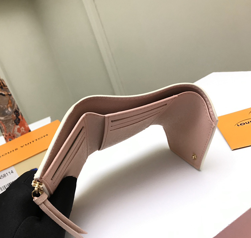 フェミニンな雰囲気と機能美が光る、モノグラム・キャンバスでコンパクトに仕上げた「ポルトフォイユ・ヴィクトリーヌ」。内装にはカードスロット、紙幣とコイン用のポケットを備えています。グレインレザーのライニングでアクセントを添え、エンヴェロップ型のフラップにはライニングと同じカラーのスナップをあしらいました。