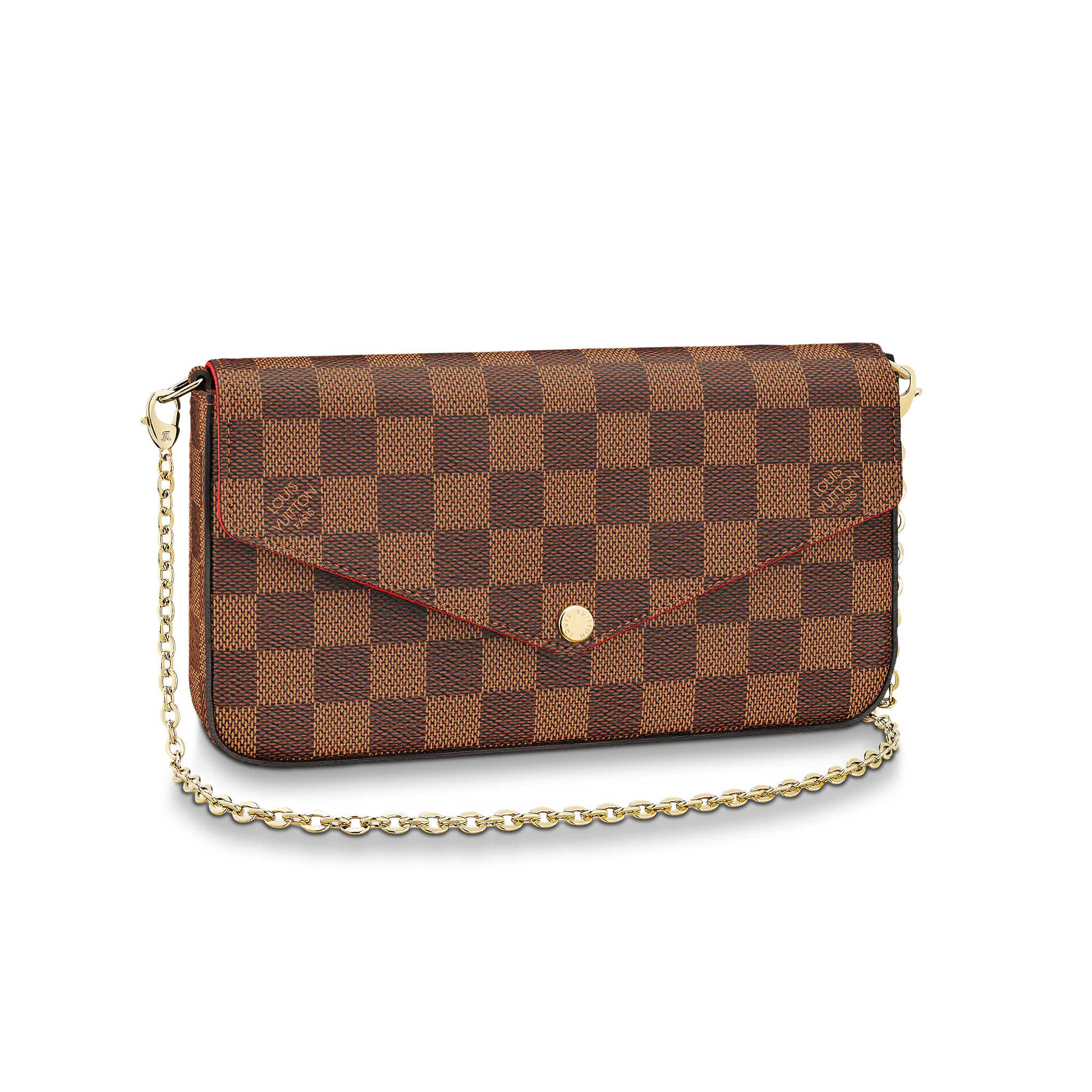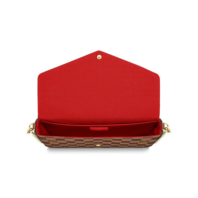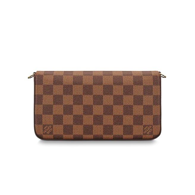 取外し可能な2つのポケットが特徴の「ポシェット・フェリシー」。1つはファスナー付き、もう1つは複数のクレジットカードスロットを備えています。ルイ・ヴィトンの伝統的なダミエ・キャンバスで仕上げた、毎日の必需品をスタイリッシュに整理して持ち歩けるアイテムです。取外し可能なゴールドカラーのチェーン付きで、ショルダーバッグやクラッチバッグとしてもお楽しみいただけます。