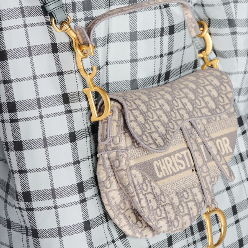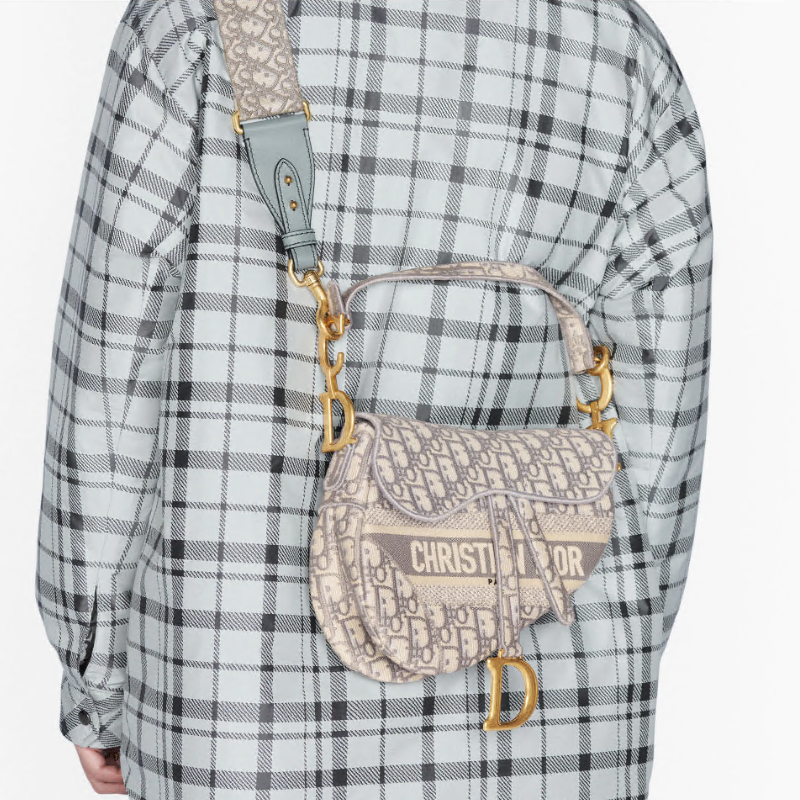マリア・グラツィア・キウリがアイコニックな「サドル」バッグを新たにアップデート。メゾンを象徴するグレーの「ディオール オブリーク」モチーフを全面に刺繍したこのモデルは、あぶみを象った“D”型マグネットクラスプ付きの「サドル」フラップと、ハンドルの両サイドにあしらったアンティークゴールドトーン メタルの“CD”シグネチャーが、伝説的なスタイルに映えるデザイン。ハンドバッグまたはショルダーバッグとしてはもちろん、別売りのショルダーストラップでカスタマイズして使えるスタイルです。