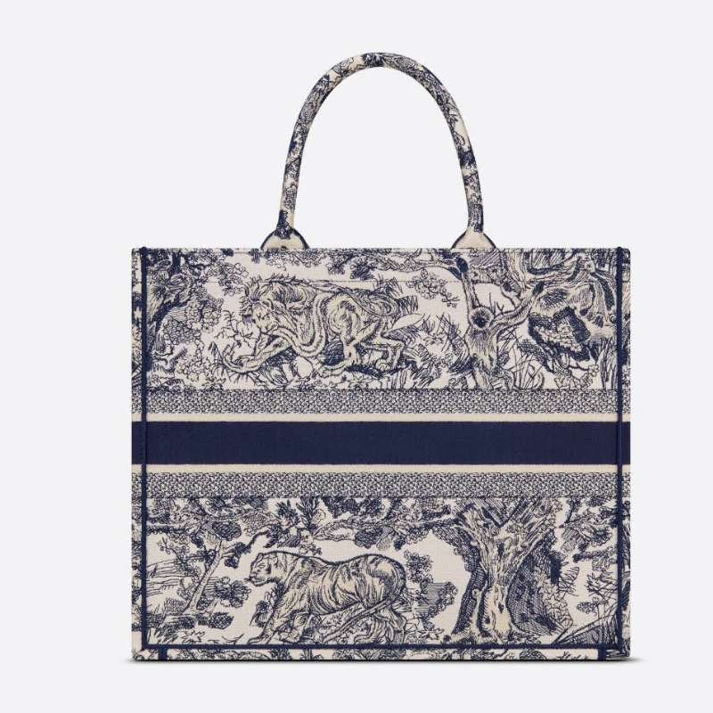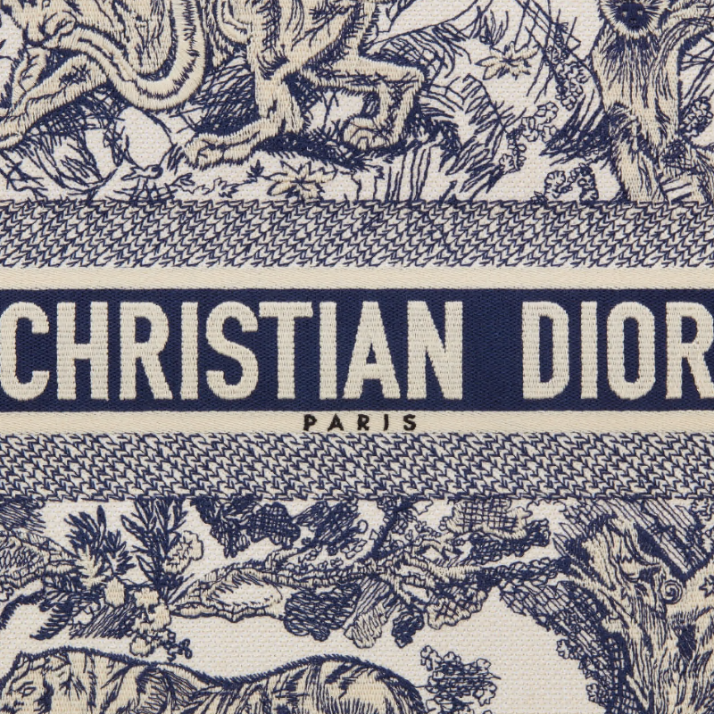マリア・グラツィア・キウリが発表したディオール「ブックトート」は、ディオールの美意識を語る上で今や不可欠なスタイル。日々必要となるものを持ち運べるサイズ感と、ブルーの「トワル ドゥ ジュイ」モチーフの総刺繍、フロントを彩る“Christian Dior”シグネチャーが魅力です。メゾンを象徴するサヴォワールフェールを体現したこのバッグは、手提げバッグとしてはもちろん、ショルダーバッグとしてもお使いいただけます。