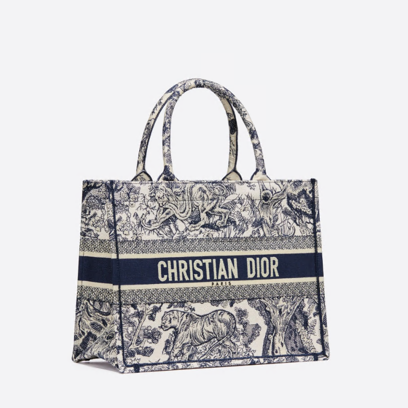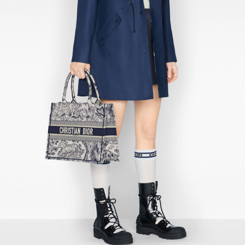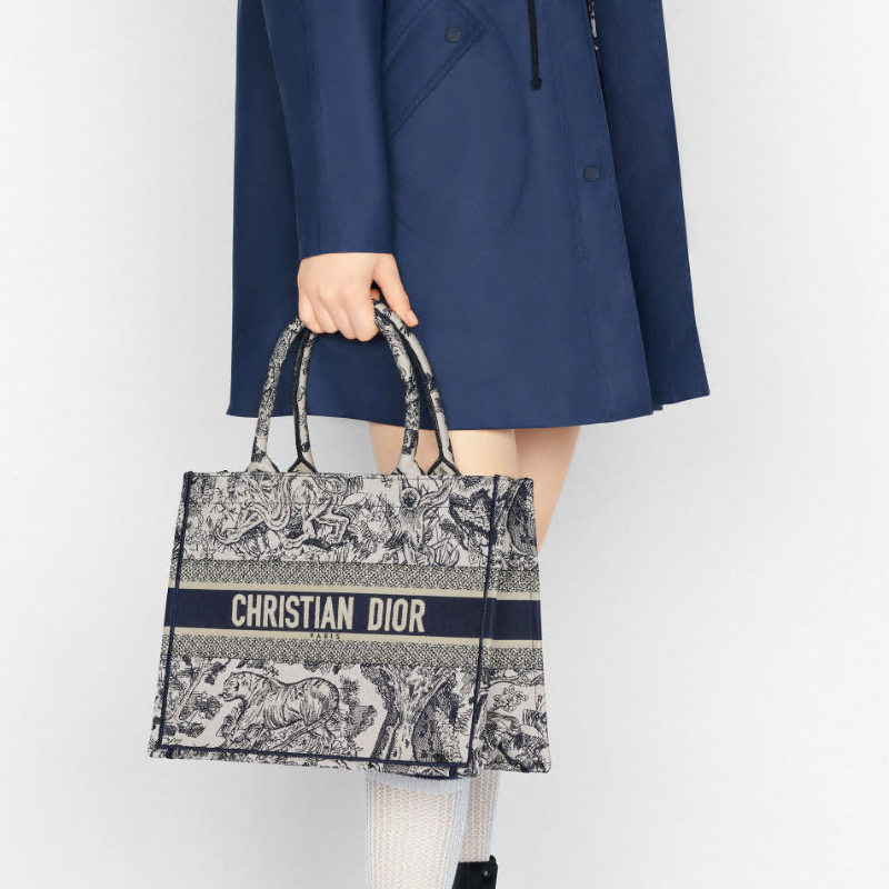 メゾンのアーティスティック ディレクター マリア・グラツィア・キウリが発表したディオール「ブック トート」は、ディオールの美意識を語る上で今や不可欠なスタイル。日々に欠かせない小物をしっかりと収納できるサイズに仕上げました。全面に刺繍したブルーの「トワル ドゥ ジュイ」モチーフと、フロントの“CHRISTIAN DIOR”シグネチャーをあしらい、メゾンを象徴するサヴォワールフェールを体現。ハンドバッグ、またはショルダーバッグとしてお使いいただける、スモールサイズのトートです。