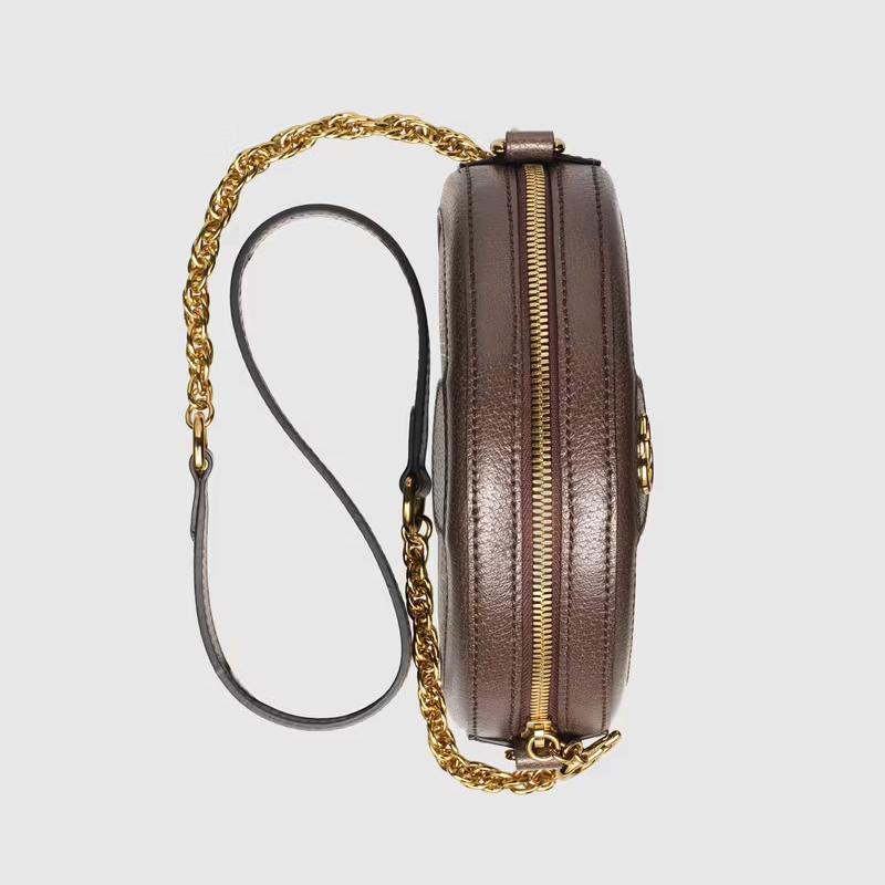 チェーンショルダーストラップ付きのラウンド ミニバッグが登場し、〔オフィディア〕の世界がさらに進化しました。GGスプリーム キャンバスに、グリーン/レッド/グリーンのウェブ ストライプがはめ込まれています。1970年代に登場したグッチ アーカイブ コードのダブルGが、レザーのタブ ディテールとジッパープルのトップに飾られています。