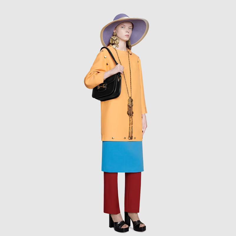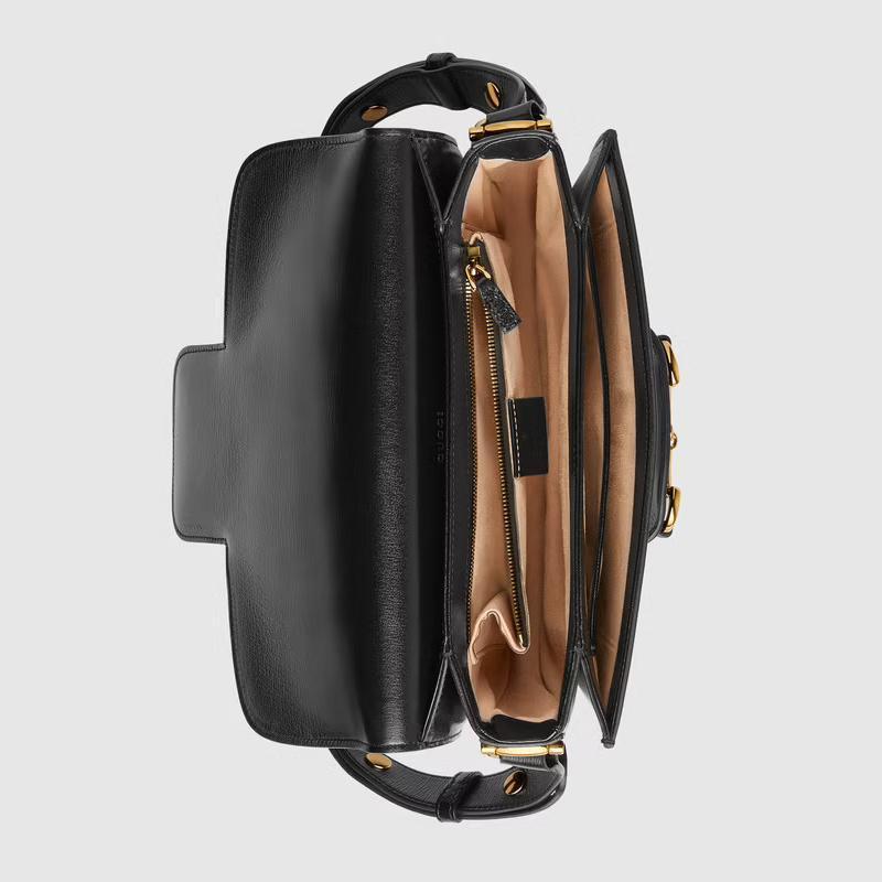 アーカイブデザインを再解釈した〔グッチ ホースビット 1955〕バッグが最新コレクションに登場。60年以上前の誕生時と同じラインやフォルムを取り入れながら、オリジナルのディテールに現代的なスピリットを加え、ホースビットを際立たせています。ダブルリングとバーで構成されたこのモチーフはブランドのルーツを物語るもので、乗馬の世界から取り入れたグッチのシンボルの中でも最も代表的なエレメントのひとつとなっています。このショルダーバッグでは小さなフラップにホースビットをあしらい、ブラックのテクスチャードレザーと印象的に組み合わせました。ショルダーストラップは長さを調節できるため、ショルダーバッグとクロスボディバッグのツーウェイでお使いいただけます。