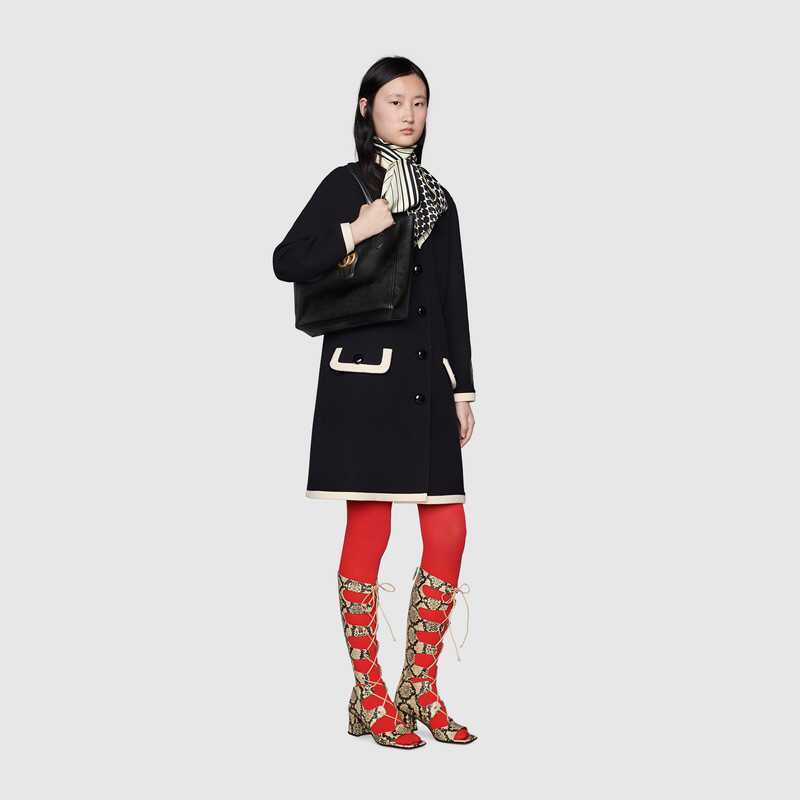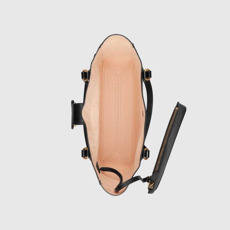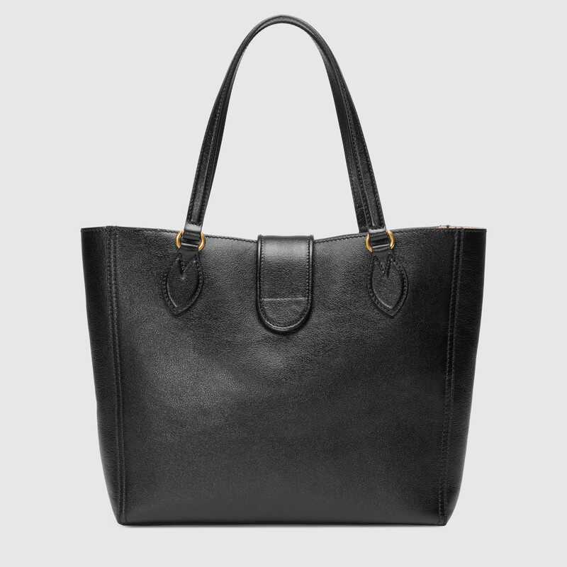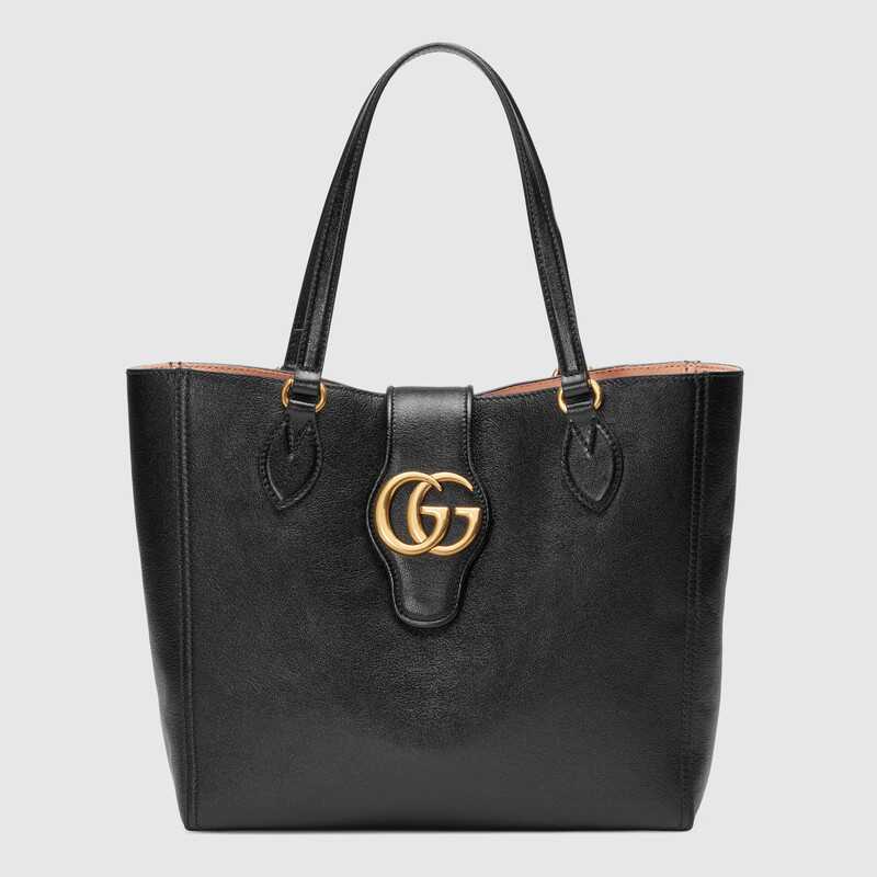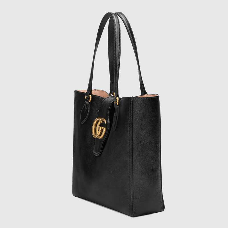 タイムレスなシェイプやシルエットを提案するEpilogueコレクション。アンティーク調のゴールドトーンで仕上げたダブルGのハードウェアが飾るこのトートバッグは、ミニマルなデザインが魅力です。ブラックのソフトレザーで仕立てました。ダブルハンドルとインナーポーチが付いているので、さまざまなスタイルにコーディネートしてお使いいただけます。