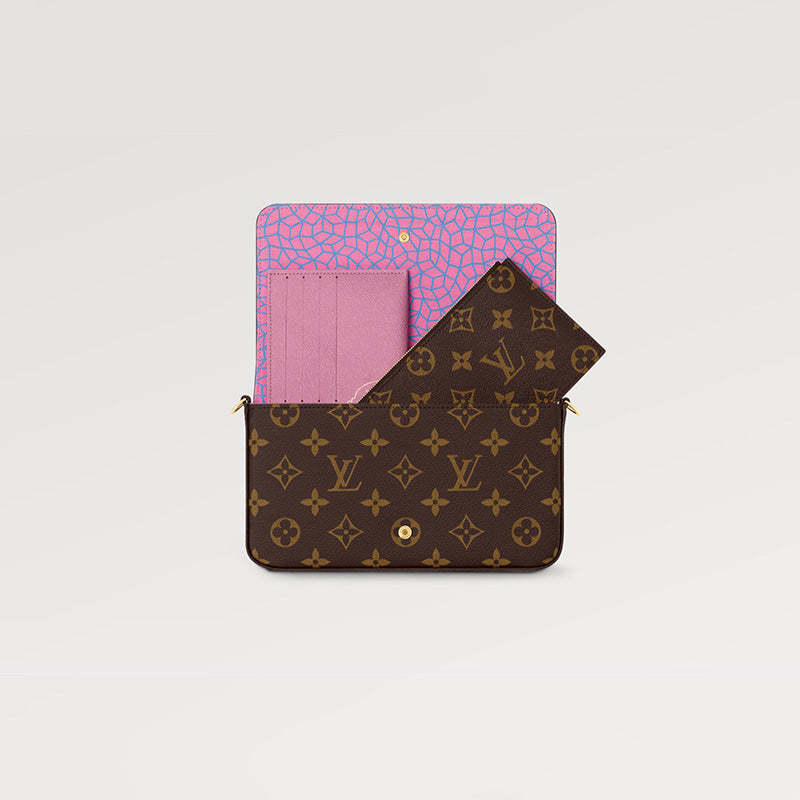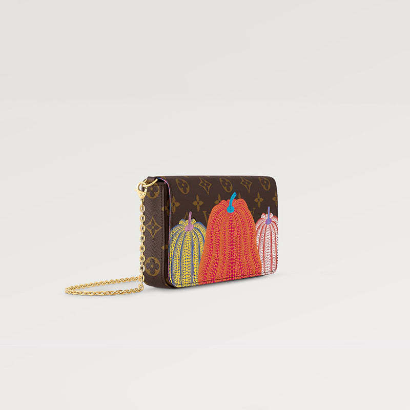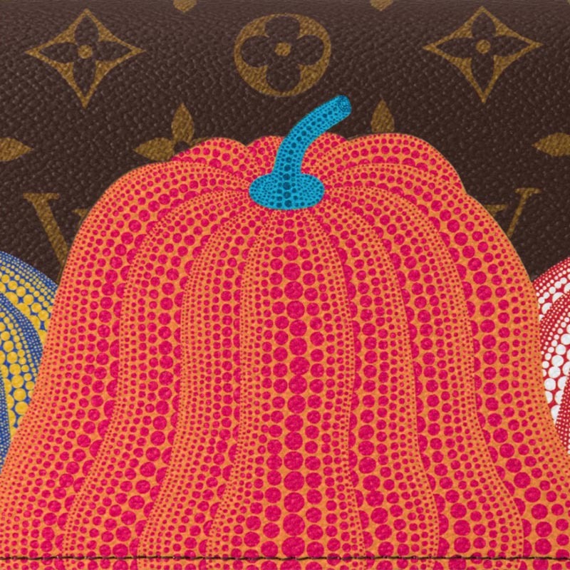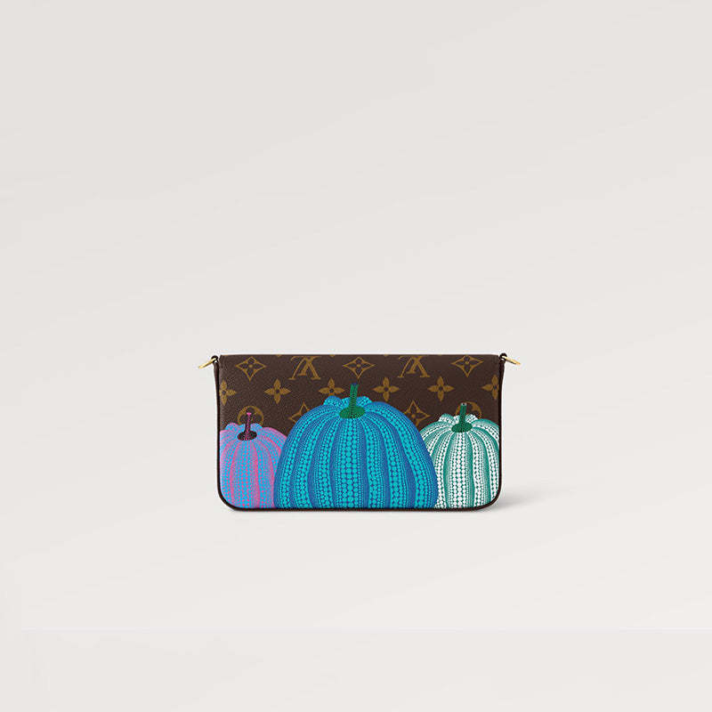 「ルイ・ヴィトン × 草間彌生」コラボレーションの卓越した新作コレクションに相応しく、クリエイティブな魅力を放つ「LV × YK ポシェット・フェリシー」。広く親しまれ、愛される日本人アーティスト 草間彌生は、カボチャを温もりと楽観主義の象徴と捉え、絵画や彫刻の主なテーマとして用いてきました。そのカボチャから着想を得て、モノグラム・キャンバスに3つのカラフルな「パンプキン」のモチーフをプリントした、スタイリッシュで機能的なクラッチバッグです。非接触型決済にぴったりの、取外し可能なカードホルダー付き。