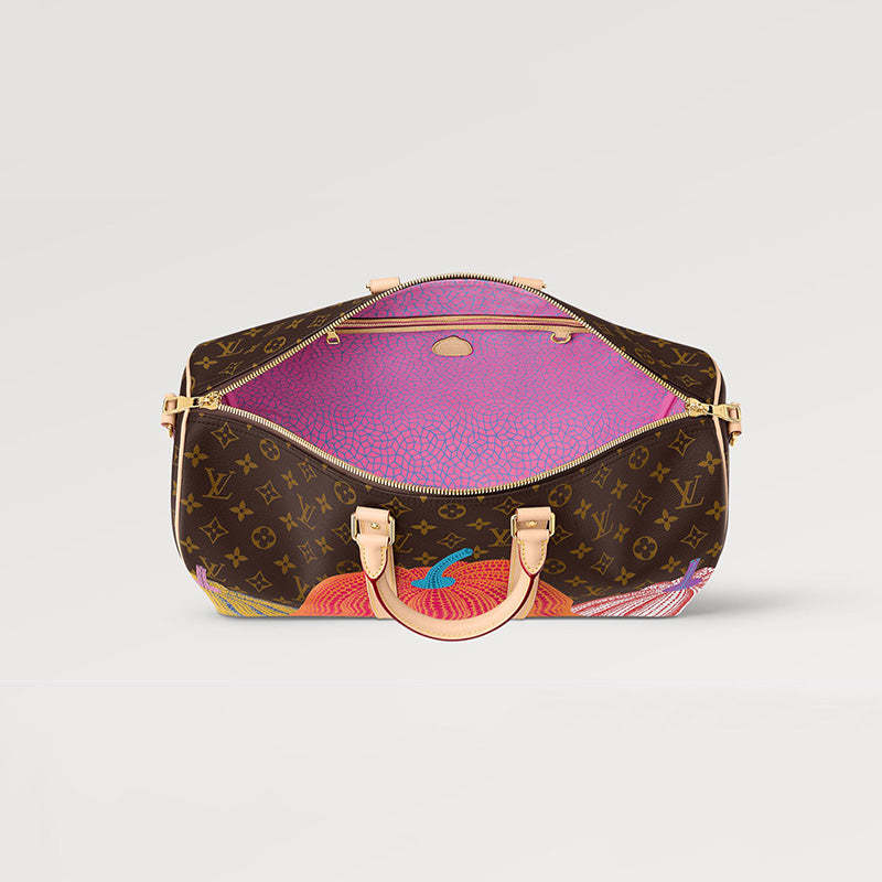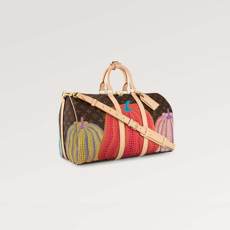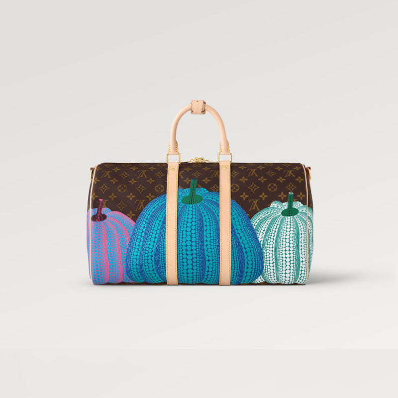 「ルイ・ヴィトン × 草間彌生」コラボレーションの新作コレクションに登場した「LV × YK キーポル 45」。日本人アーティスト 草間彌生を代表するビジュアルテーマの1つであるカボチャから着想を得て、カラフルな「パンプキン」のモチーフを目のくらむようなドットで表現しています。カボチャの愛らしいフォルムと人間のような佇まいを愛する草間。そのこだわりとメゾンのアイコニックなモノグラム・キャンバスが融合した、クリエイティビティとクラフツマンシップが光る機能的なトラベルバッグです。
