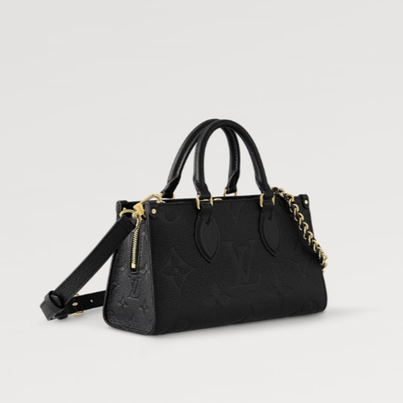 バッグ「オンザゴー」を均整の取れた美しい横長のシルエットで再解釈した「オンザゴー EW」。トーナルなモノグラム・ジャイアント パターンをエンボス加工で施したモノグラム・アンプラント レザーで仕立てました。日常の必需品を持ち運ぶのにぴったりな整理しやすい内装も魅力の、コンパクトなモデルです。2本の関節式のトップハンドルと取外し可能なチェーン & レザーのストラップで、さまざまな持ち方をお楽しみいただけます。