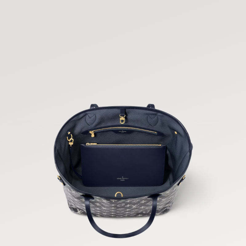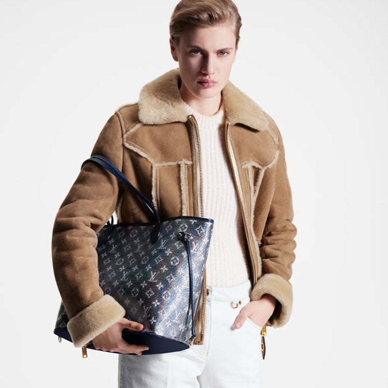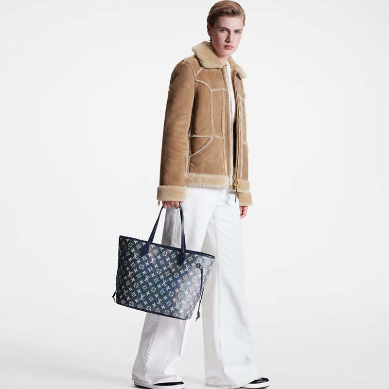 モノグラム コーティング キャンバスは、ネヴァーフル MM トート バッグに人目を引く、ほとんどホログラフィックのような雰囲気をもたらします。このキャンバスはコットンのジャカードベースで作られており、光を受けるとさまざまな色合いが現れる明るいラミネート加工で覆われています。スリムで快適なハンドルは肩や腕に簡単に掛けられます。