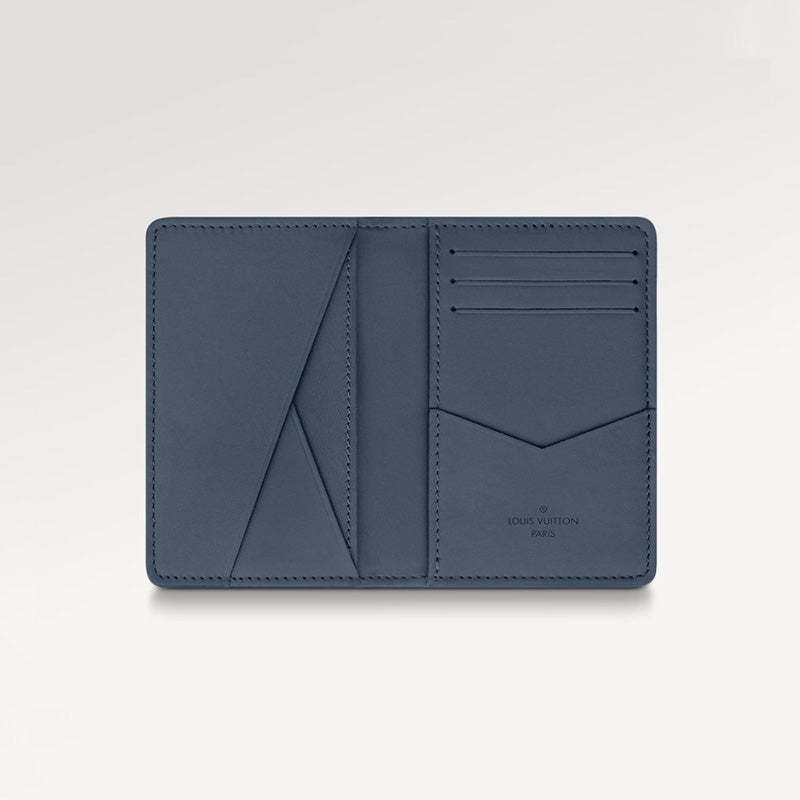ネイビーブルーのモノグラム・シャドウ レザーで仕立てた「オーガナイザー・ドゥ ポッシュ」。しなやかなレザーにライトブルーのモノグラム・パターンをエンボス加工とプリントで施し、控えめな色使いで仕上げました。身の回り品を整理できるポケットとカードスロットを備えた、財布の代わりにもなる便利なアイテムです。