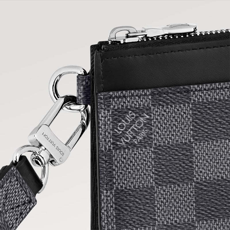 ルイ・ヴィトンの伝統あるダミエ・グラフィット キャンバスにモダンな機能性を融合した「ジッピー・ドラゴンヌ」。ファスナーを開けると、携帯電話を2台収納するのに充分なサイズの仕切り付きメインコンパートメントのほか、12個のカードスロットとファスナー付きのサイドコンパートメントが現れます。スタイリッシュな毎日のお供として、バッグに入れたり、取外し可能なリストストラップを付けて持ち運ぶことも可能です。