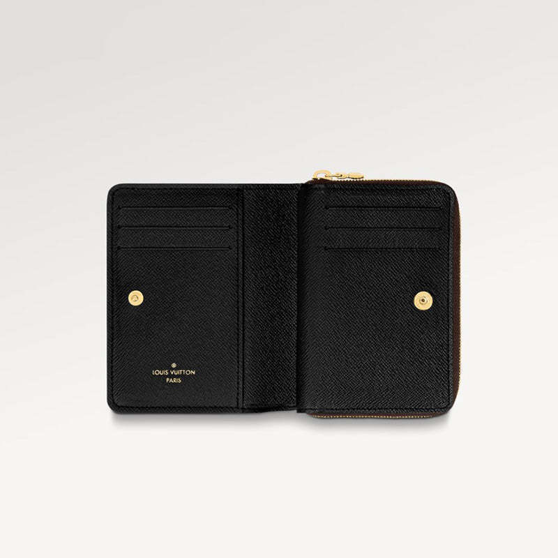 モノグラム・キャンバスで仕立てた「ポルトフォイユ・ルー」。モノグラム・リバース キャンバス製のモノグラム・フラワー モチーフを添えたフロントポケットが、コントラストを描きます。コンパクトなデザインとスクエアシェイプが魅力の財布です。グレインレザーの内装には6つのカードスロットと紙幣用コンパートメント、サイドにはファスナー付きコインポケットをあしらいました。