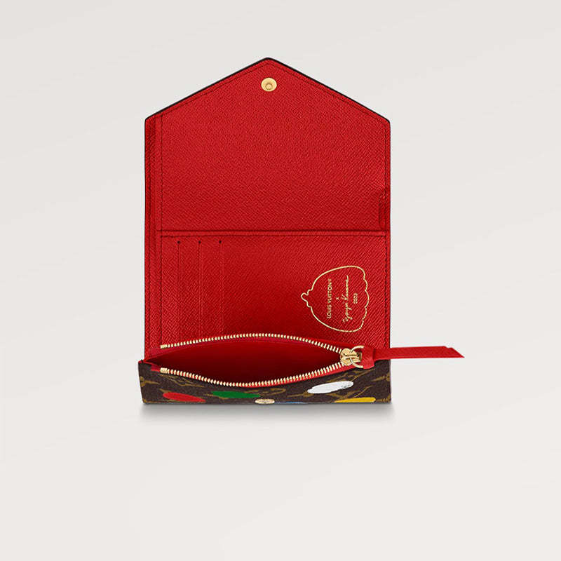 「ルイ・ヴィトン × 草間彌生」コラボレーションの新作コレクションに相応しく、カラフルなドットで彩りを添えた「ポルトフォイユ・ヴィクトリーヌ」。広く親しまれ、愛される日本人アーティスト 草間彌生が、彼女のキャリアを通じて作品に不可欠な要素としたのが水玉模様でした。モノグラム・キャンバスにスクリーンプリントで描いた陽気なドットが、立体的なハンドペイント風の印象を演出します。アーティスティックにアップデートされた、実用性にも優れたアクセサリーです。