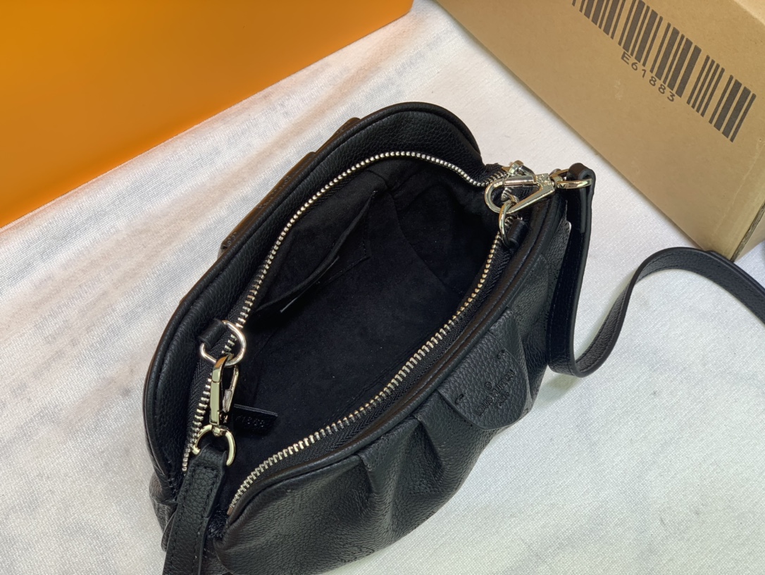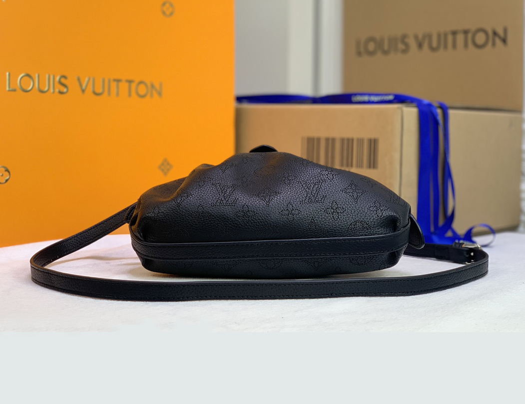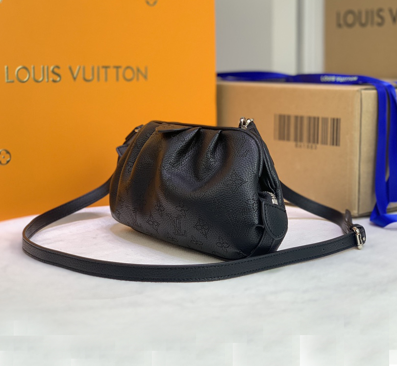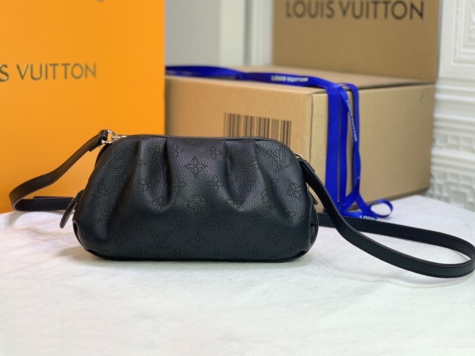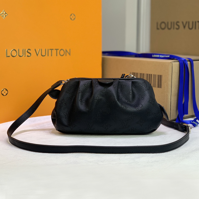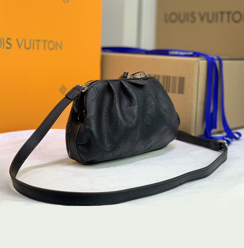 ドレーパリーの折り目やプリーツから着想を得て、柔らかでボディフレンドリーなシェイプに仕上げた「スカラ・ミニ」。アイコニックなモノグラム・パターンをパーフォレーションで施した、しなやかなマヒナ・レザーが魅力です。身の回りの必需品を持ち運ぶのに充分な容量を備え、取外し & 調節可能なストラップ付きでさまざまな持ち方をお楽しみいただけます。