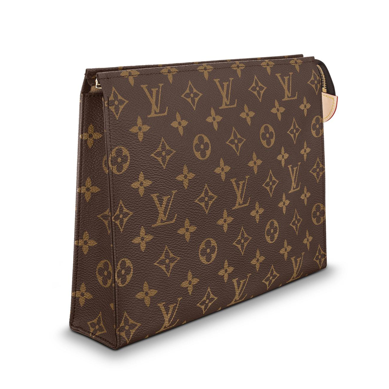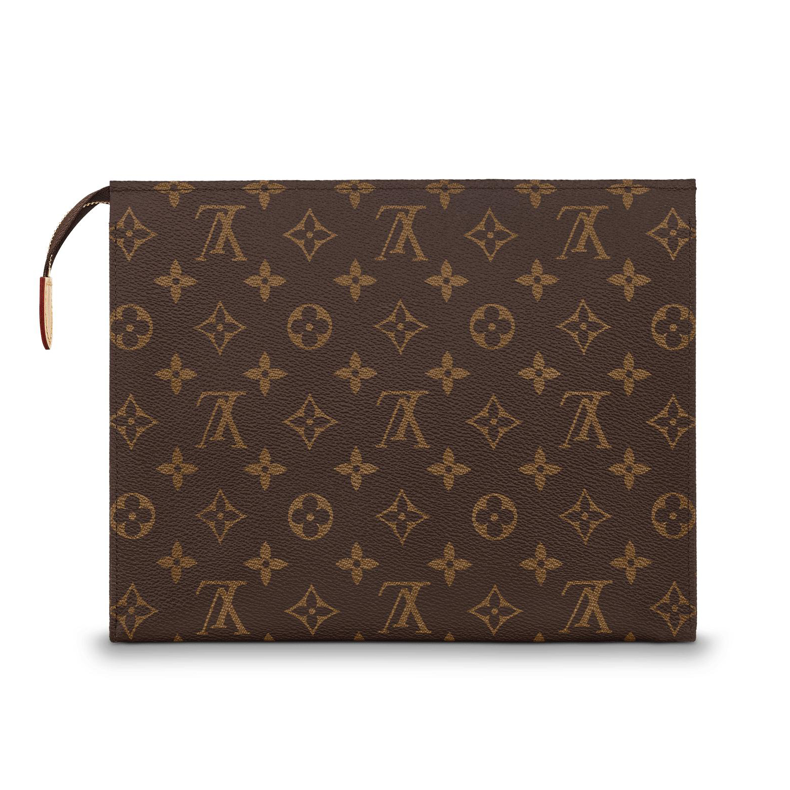 「ポッシュ・トワレ」の 一番大きなモデル「ポッシュ・トワレ 26」。サイドはマチ付きなので、化粧品などをゆったりと収納できます。ハンドバッグにもスマートに収まります。