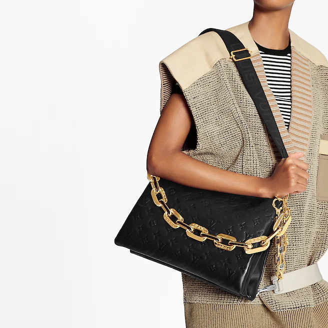 モノグラム・パターンをエンボス加工で施したパフ感たっぷりのラムレザーで仕立てた「クッサン MM」。2021春夏コレクションで最も視線を集めたアイテムです。ボリューミーで、柔らかさとしなやかさを兼ね備えたピローのような質感が魅力。調節可能なレザーストラップでショルダーバッグやクロスボディバッグとして、または新たなLV エッジ・チェーンでバゲットキャリーやアンダーアームキャリーもお楽しみいただけます。