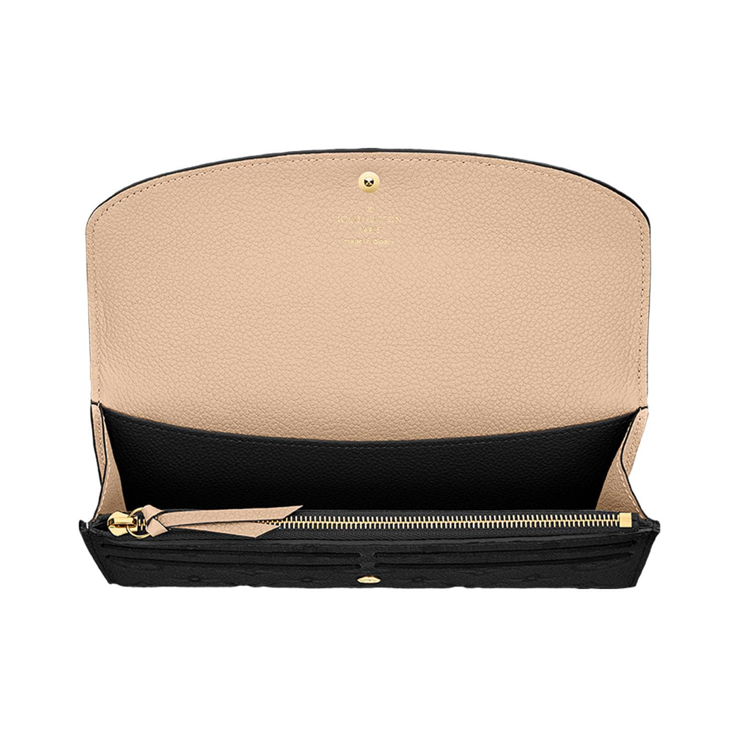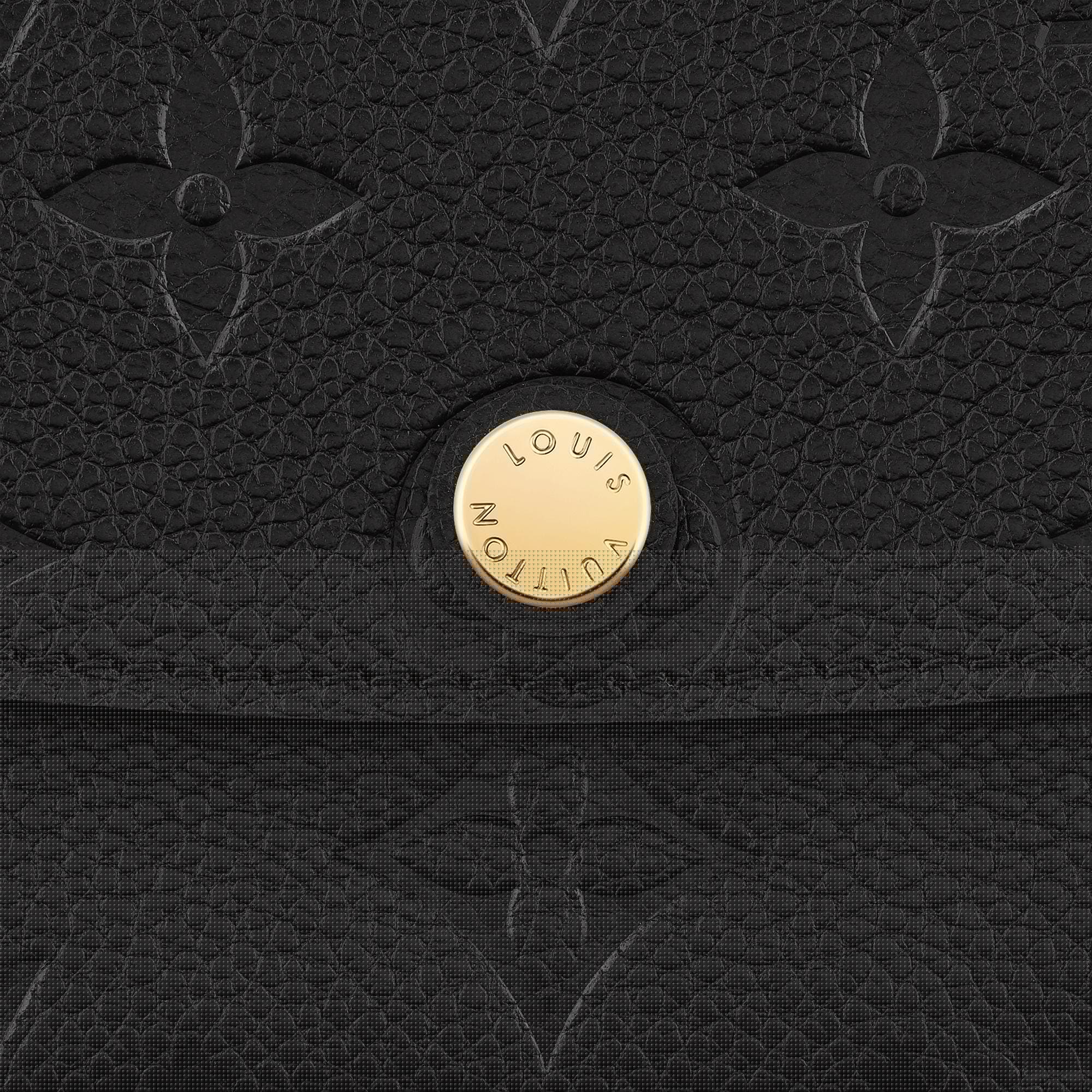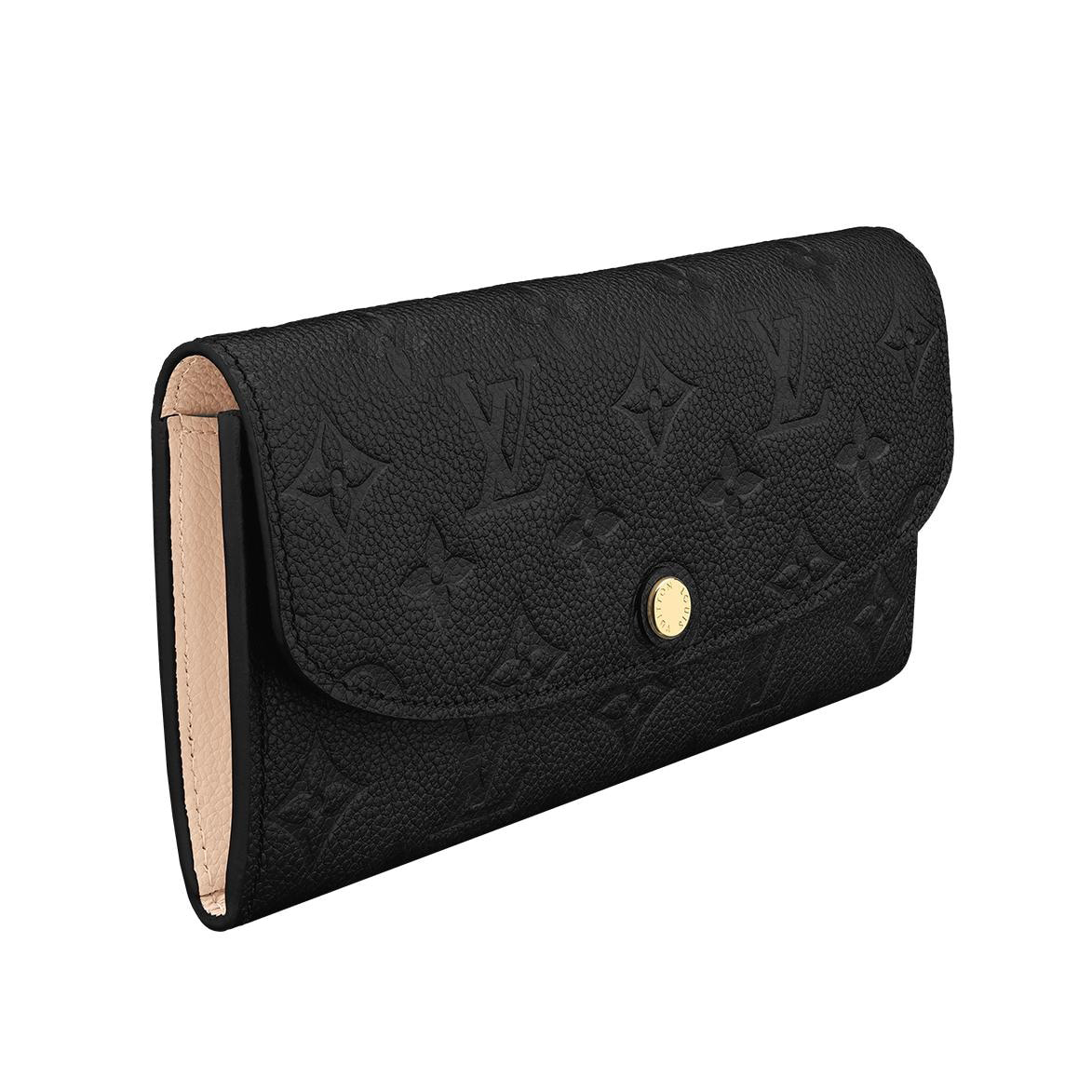 アイコニックなモノグラム・パターンのエンボス加工を施したモノグラム・アンプラント レザーに、コントラストカラーのなめらかなグレインレザーのライニングで仕上げた「ポルトフォイユ・エミリー」。同系色のスナップ開閉式のエンヴェロップ型のフラップの下に、充分な容量のコンパートメント、ファスナー付きコインポケット、カードスロットを備えた収納力抜群のアイテムです。