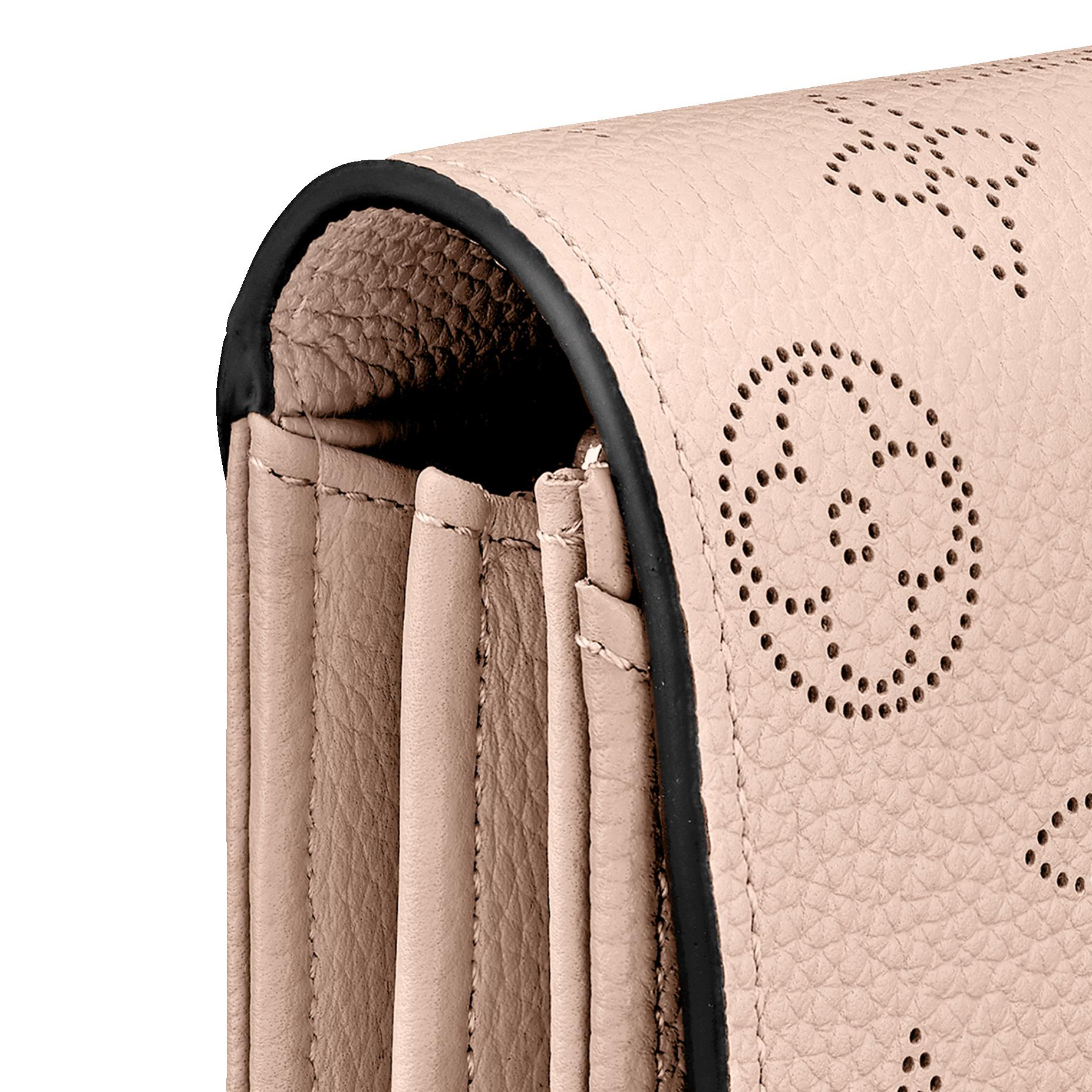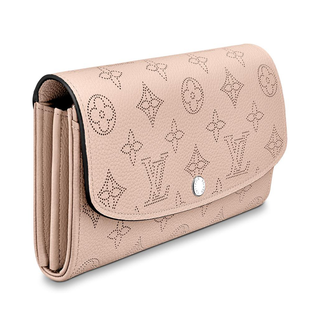 この上なくなめらかなカーフレザーに、繊細なモノグラム・パターンのパーフォレーションを施したマヒナ・レザーの長財布「ポルトフォイユ・イリス」。フェミニンな印象のラウンド型のフラップの下には、2つの充分な容量のコンパートメント、ファスナー付きコインポケット、複数のカードスロットを備えています。刻印を施したシルバーカラーのスナップなどの洗練されたディテールも魅力。