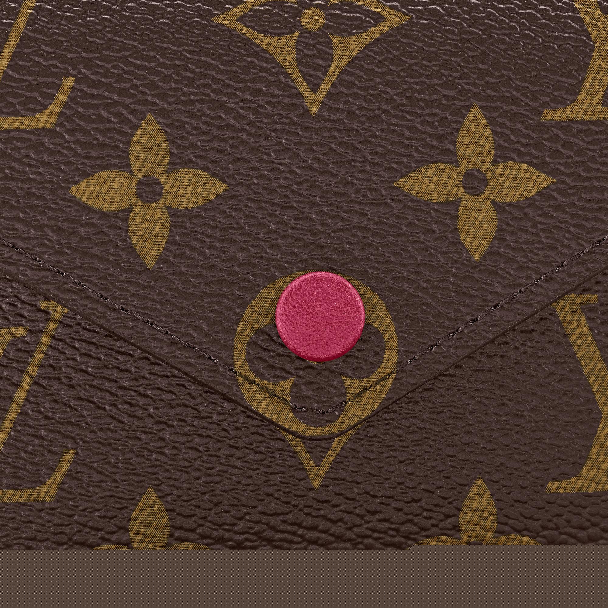 フェミニンな雰囲気と機能美が光る、モノグラム・キャンバスでコンパクトに仕上げた「ポルトフォイユ・ヴィクトリーヌ」。内装にはカードスロット、紙幣とコイン用のポケットを備えています。グレインレザーのライニングでアクセントを添え、エンヴェロップ型のフラップにはライニングと同じカラーのスナップをあしらいました。