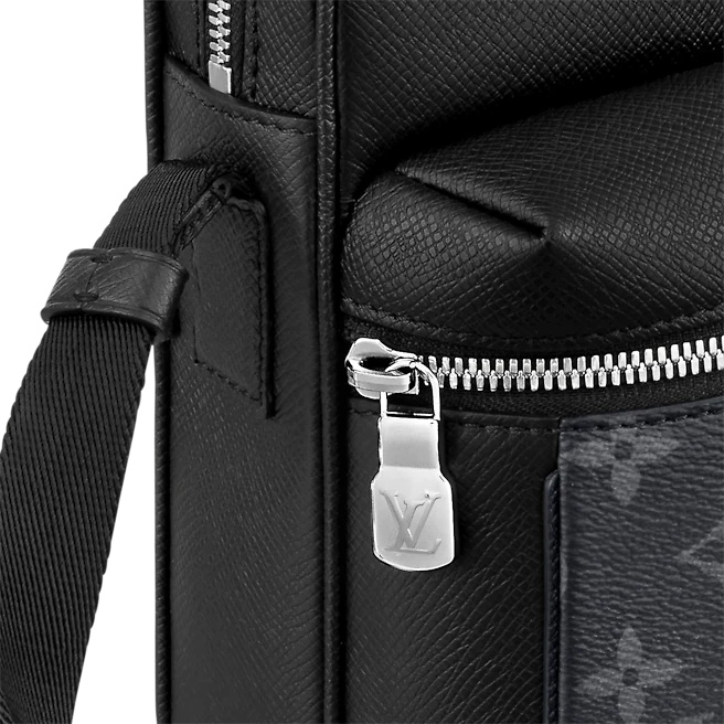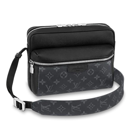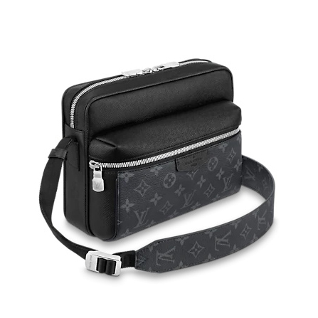 2019春夏シーズンに向け、タイガ・レザーとモノグラム・キャンバスを組み合わせ、まるで黒一色のように仕上げた大胆なデザインの「アウトドア・メッセンジャー PM」。トーン・オン・トーンの色合いに、フロントのファスナーなどシルバーカラーの金具がアクセントを添えます。調節可能なショルダーストラップで、快適な使い心地です。