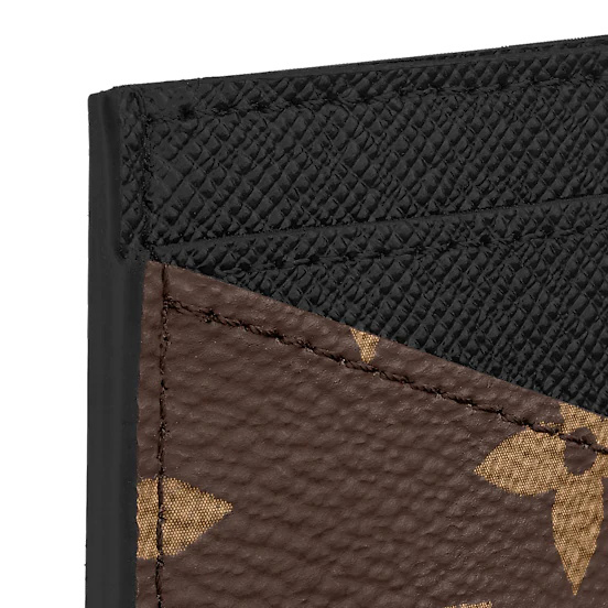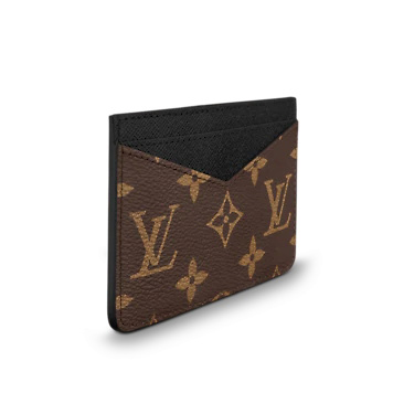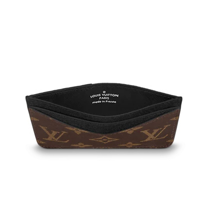 シンプルなカードケース、「ネオ・ポルト カルト」はポケットにも収まるスリムなデザインが魅力的。表面は横入れ、裏面は縦入れにカードを収納できる、個性的な一品です。モノグラム・キャンバスとブラックレザーのコントラストがシック。
