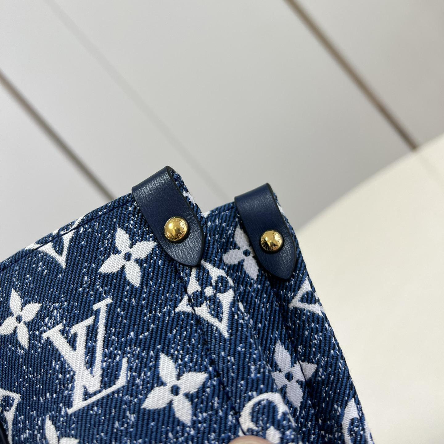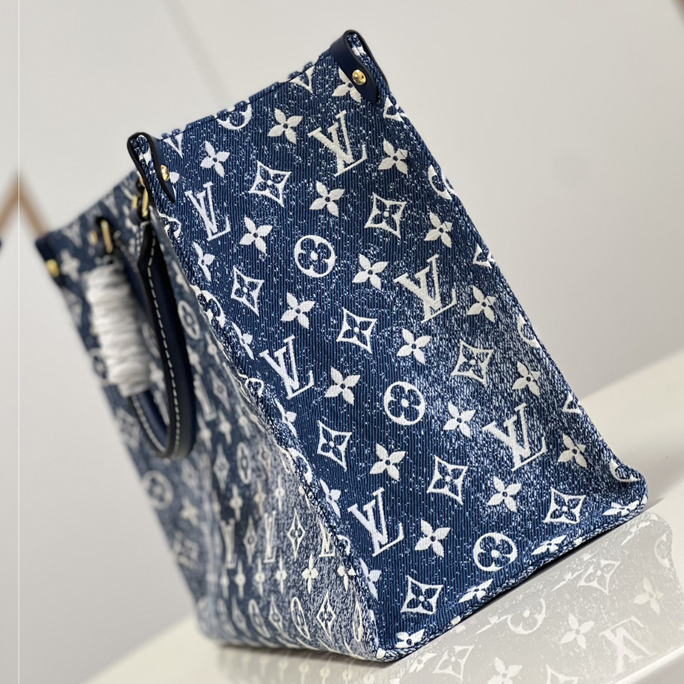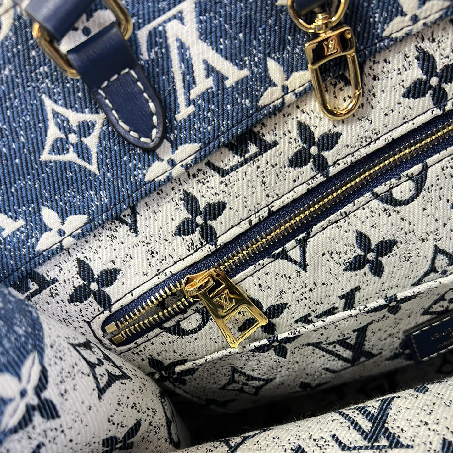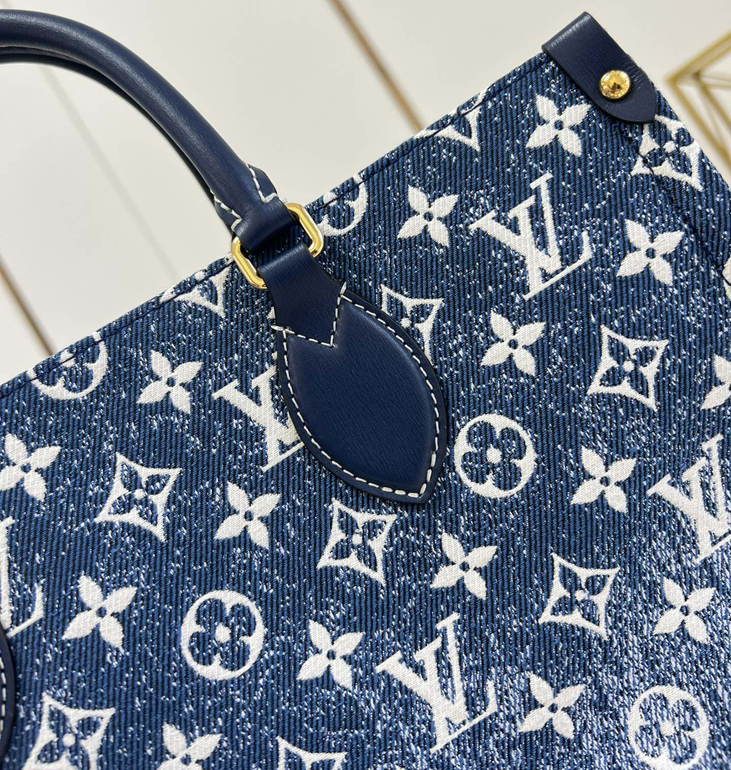 ストーンウォッシュ風の質感を添え、アイコニックなモノグラム・モチーフをジャカード織りで表現したルイ・ヴィトンの「モノグラム・ジャカード デニム」を使用した「MONOGRAM JACQUARD DENIM ON THE GO」。使いやすいサイズに、長さの異なるハンドルが付属した、デイリーに活躍するアイテムです。
