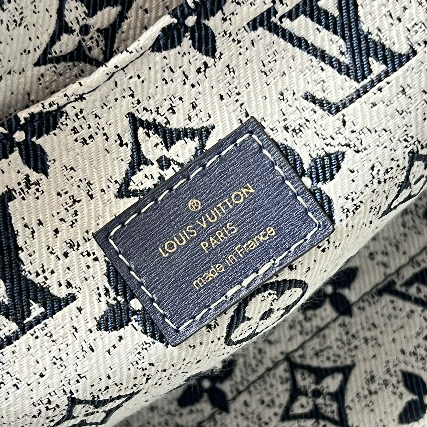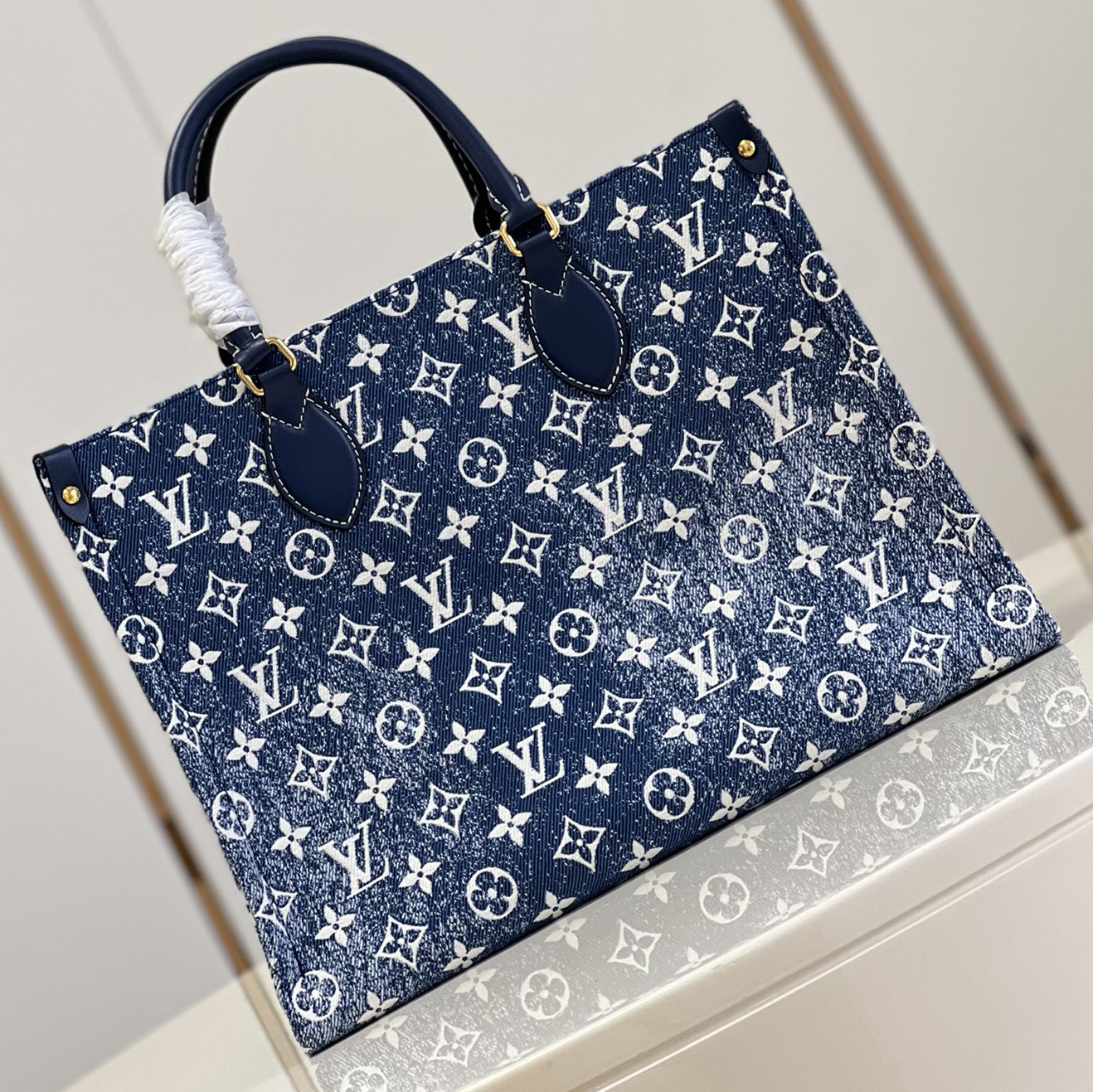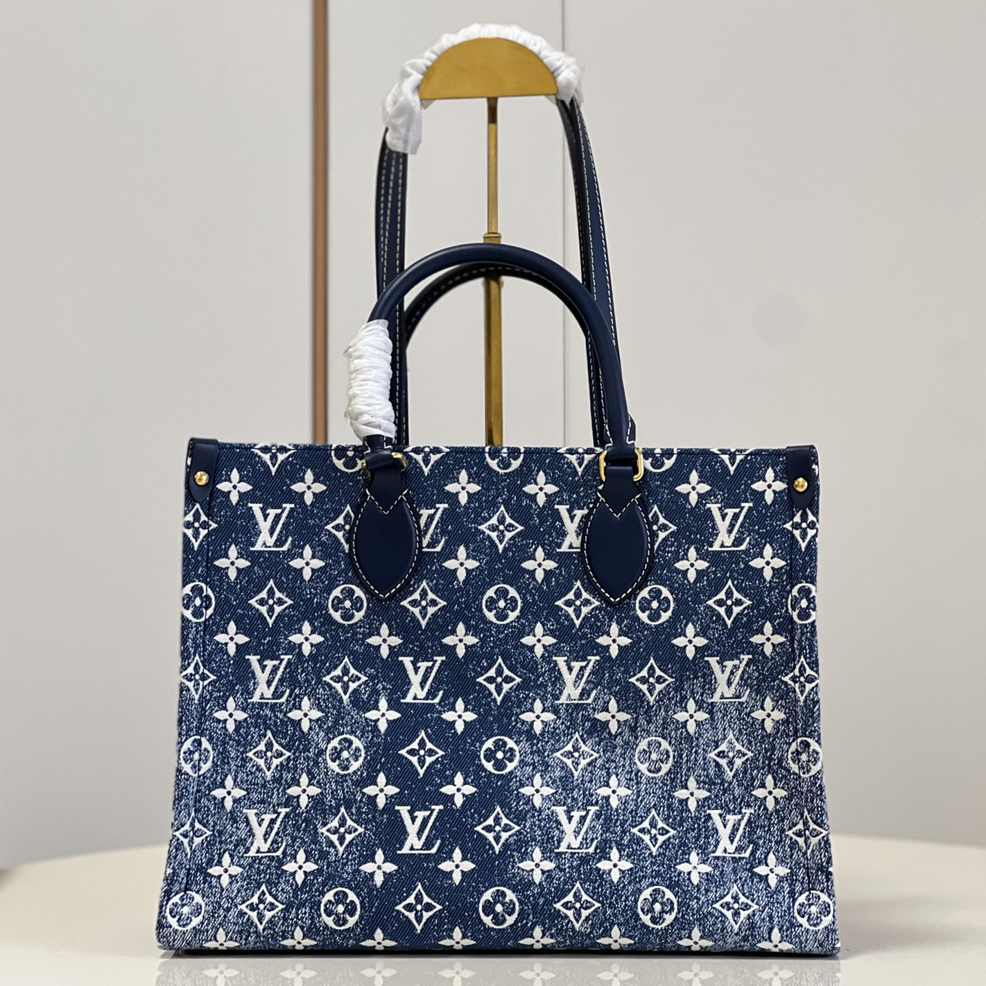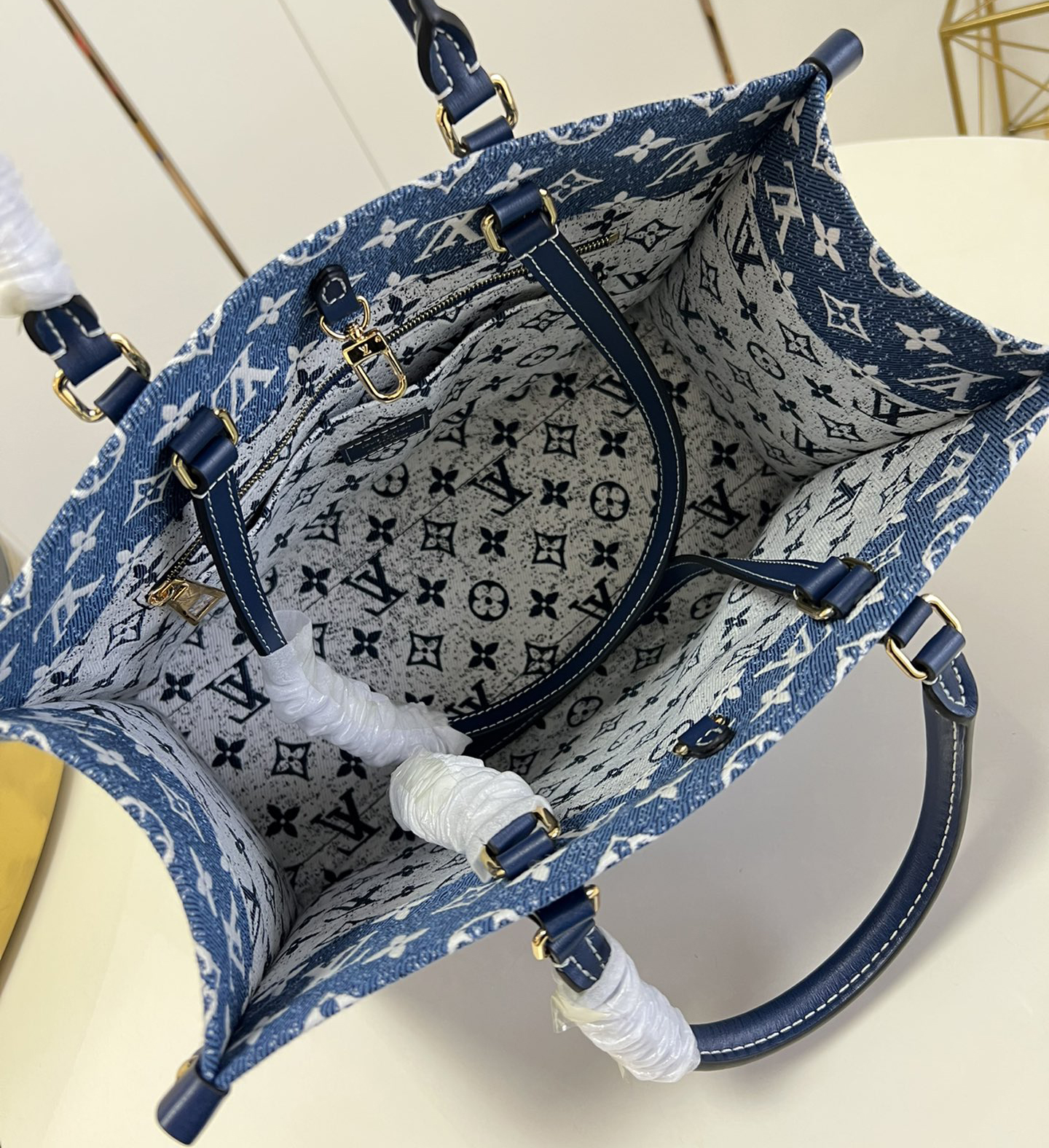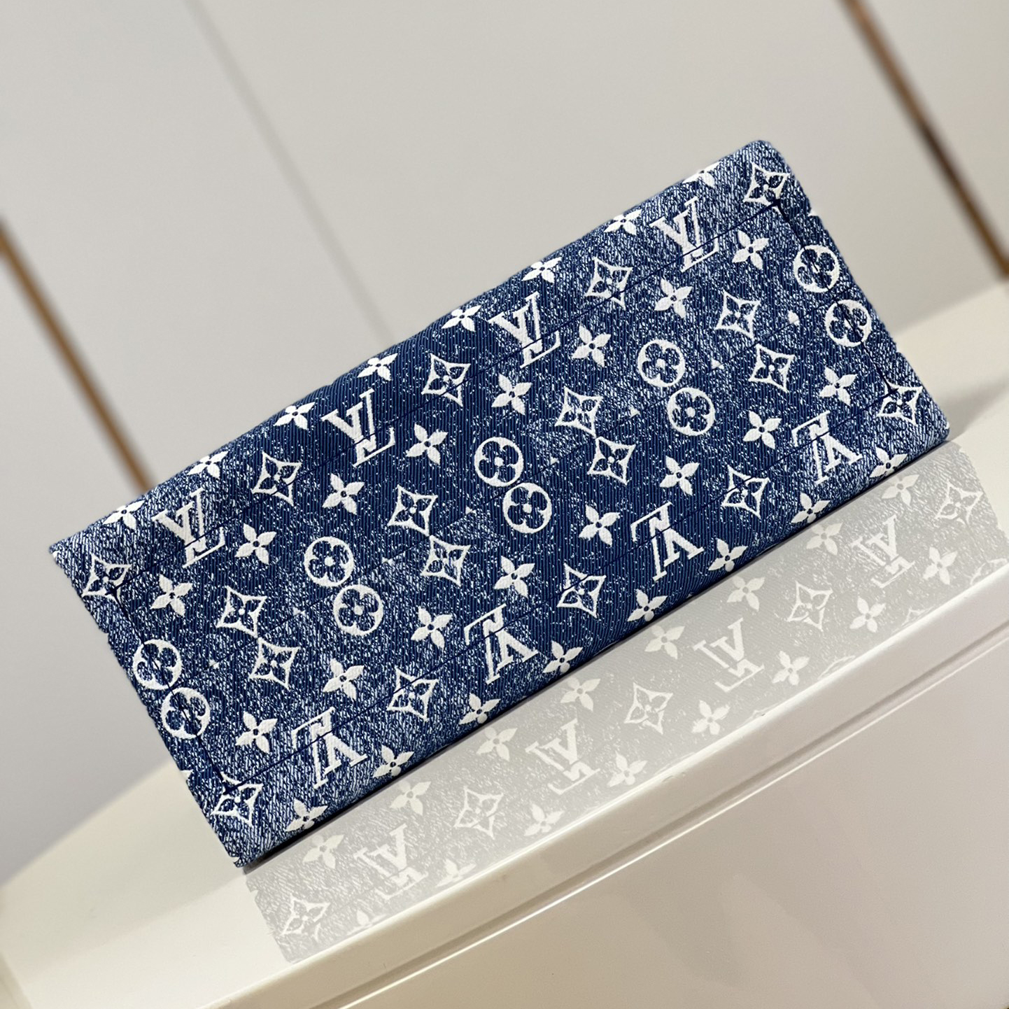 ストーンウォッシュ風の質感を添え、アイコニックなモノグラム・モチーフをジャカード織りで表現したルイ・ヴィトンの「モノグラム・ジャカード デニム」を使用した「MONOGRAM JACQUARD DENIM ON THE GO」。使いやすいサイズに、長さの異なるハンドルが付属した、デイリーに活躍するアイテムです。