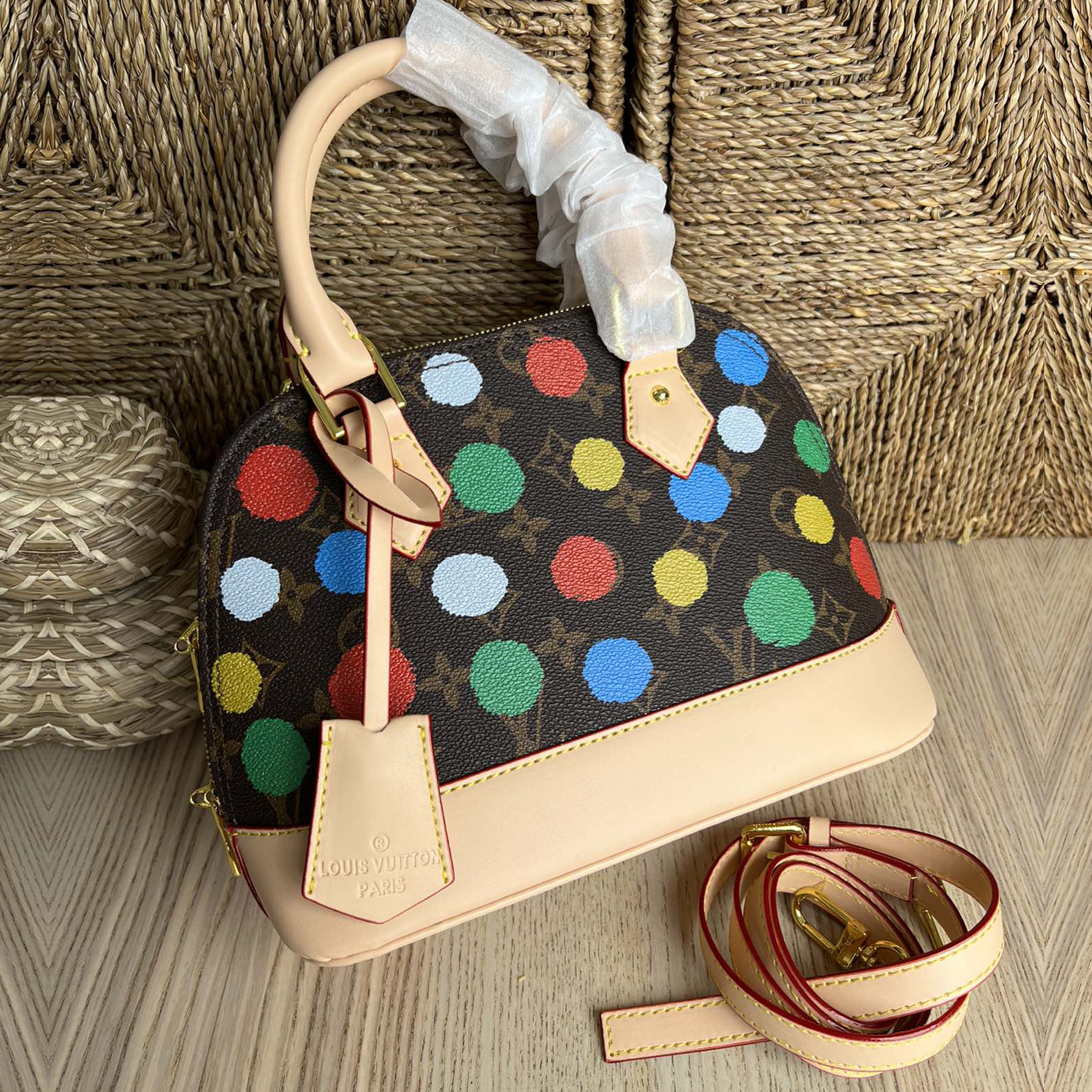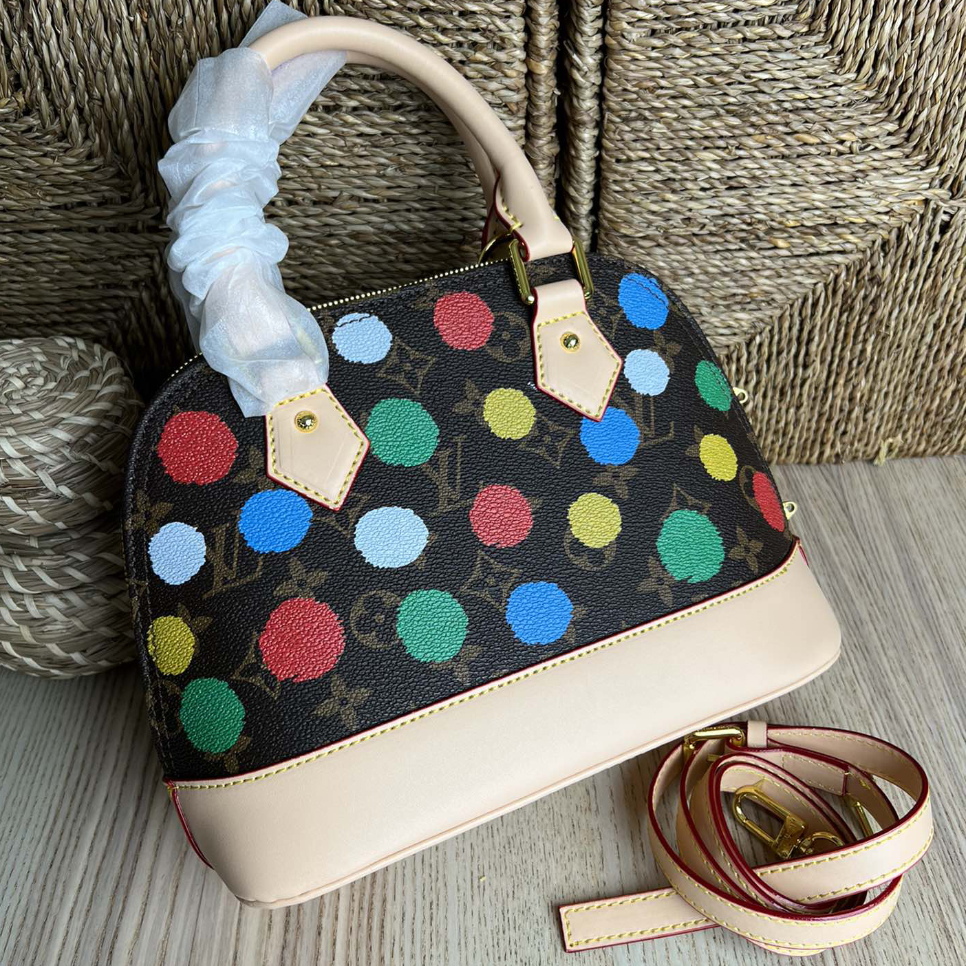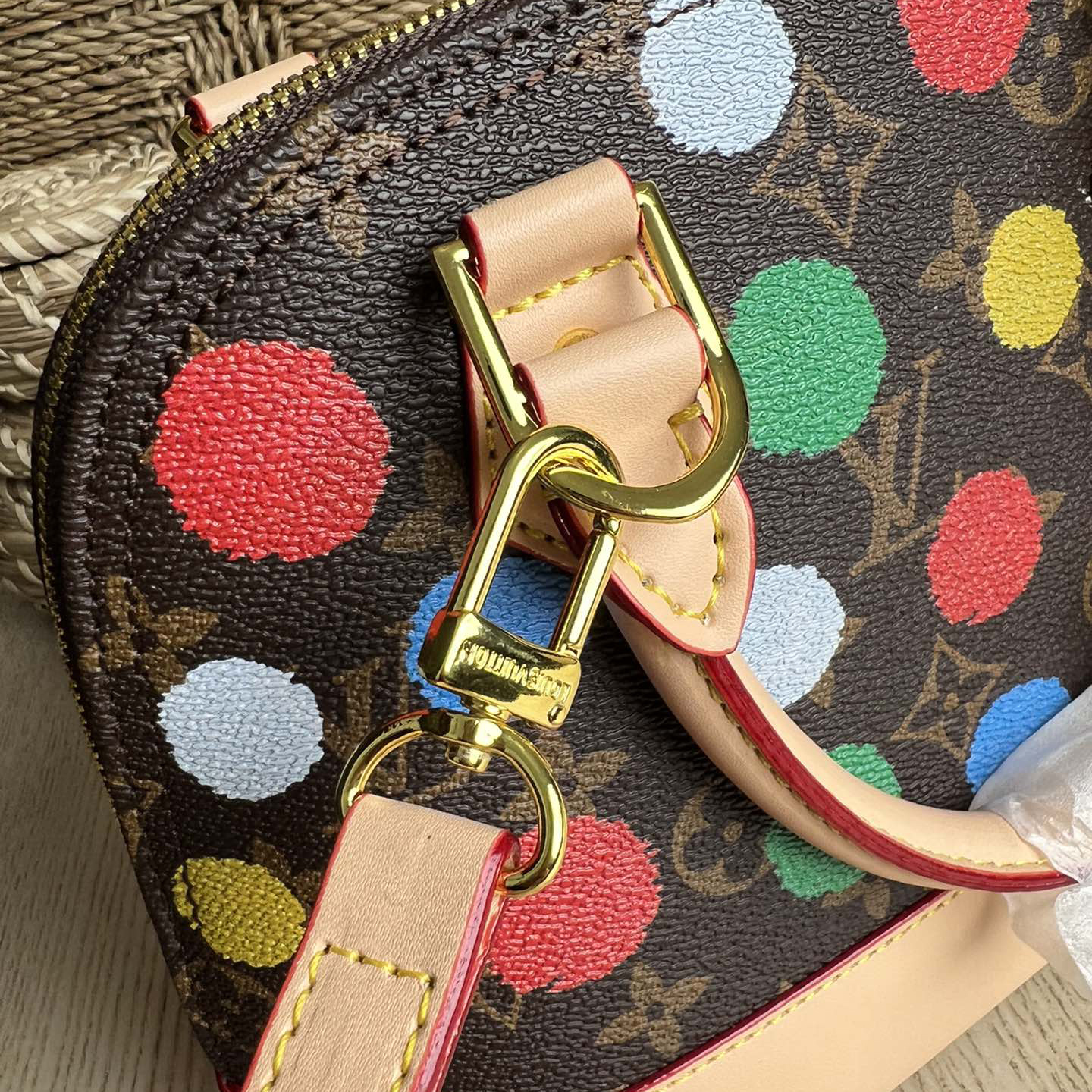 最初の「ルイ・ヴィトン × 草間彌生」コレクションから10周年を迎えて作られた「アルマ BB」。著名な日本人アーティスト 草間彌生が、自らのシグネチャーである水玉模様をハンドペイントしたトランクをベースにデザインしました。今回は新たなコラボレーションの一環として、そのマルチカラーのドットを再現。高度なスクリーンプリントのプロセスで、モノグラム・キャンバスにさりげないレリーフ効果を生み出しました。アップビートなエスプリを感じさせる、貴重なコレクターズアイテムです。