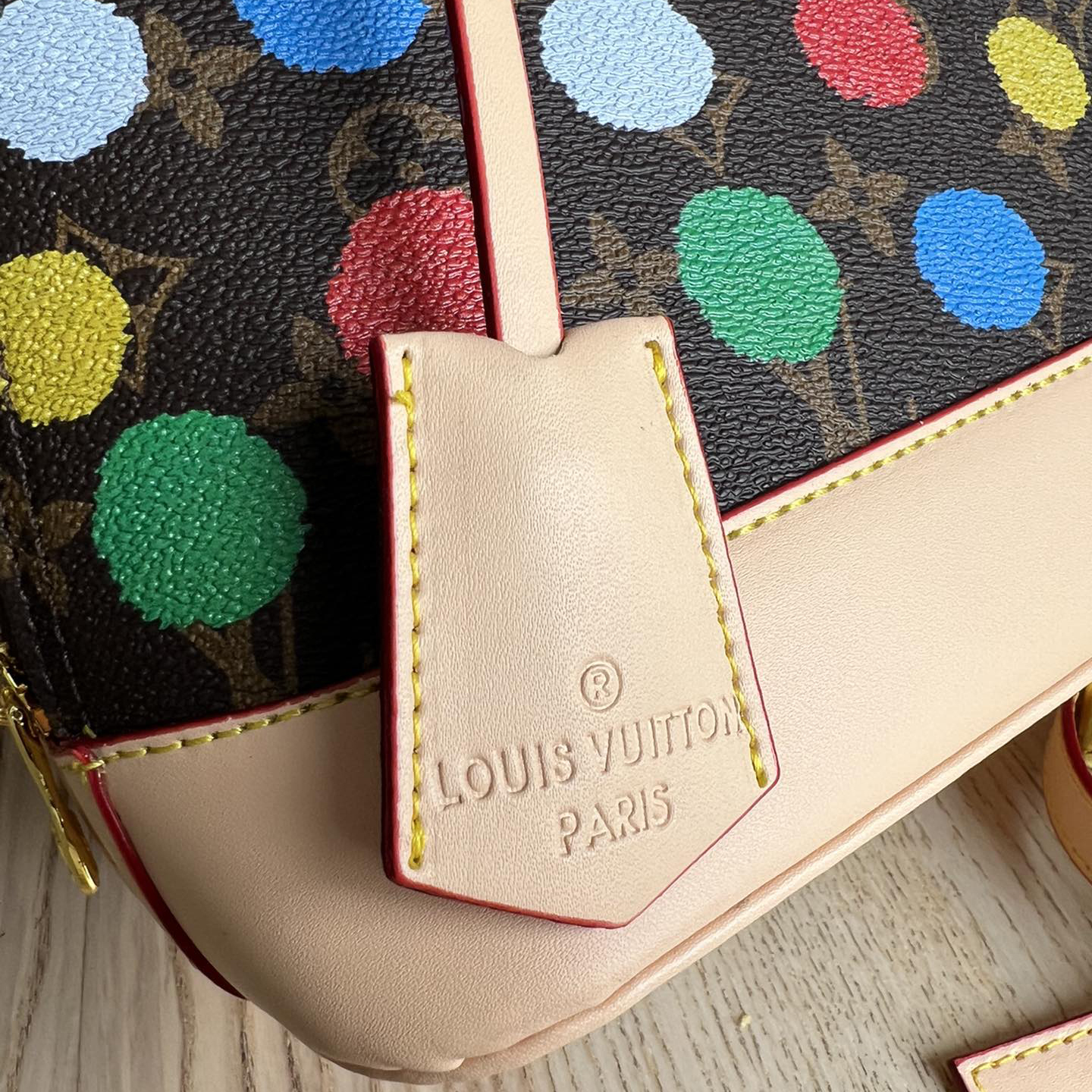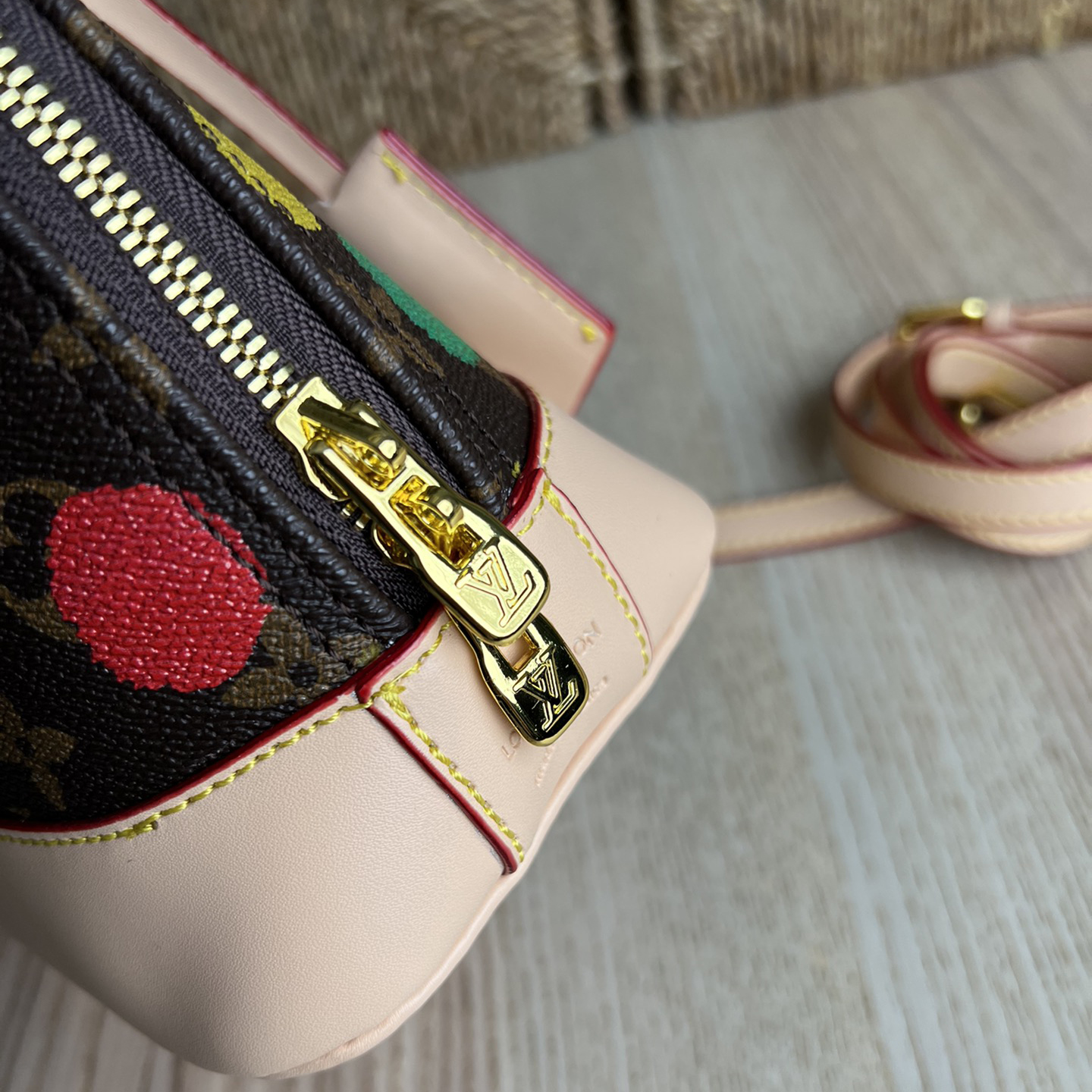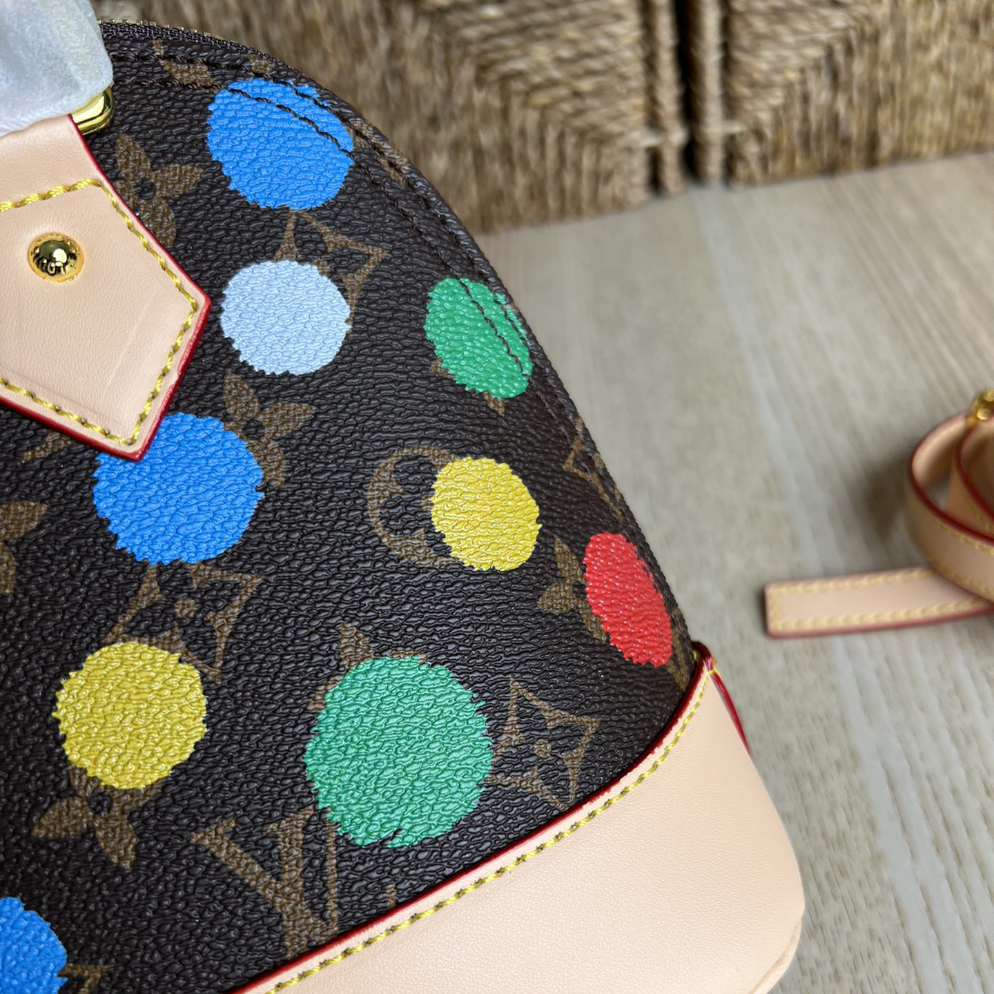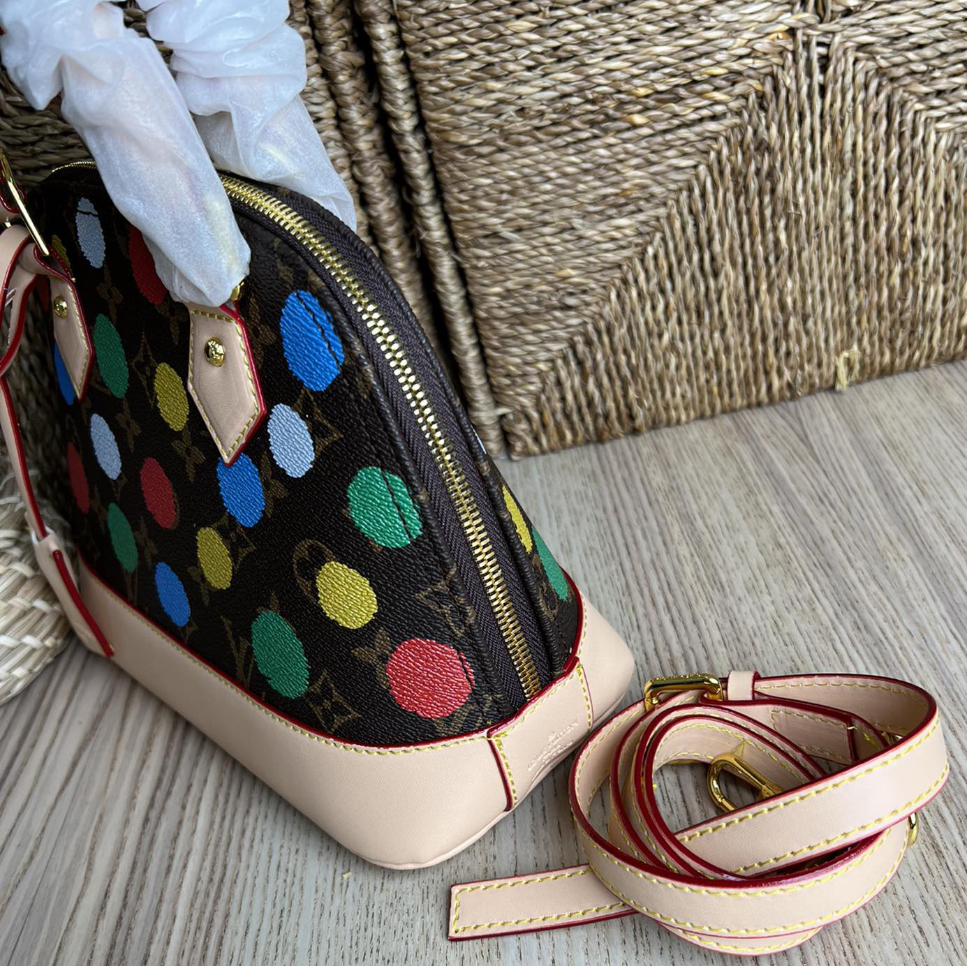 最初の「ルイ・ヴィトン × 草間彌生」コレクションから10周年を迎えて作られた「アルマ BB」。著名な日本人アーティスト 草間彌生が、自らのシグネチャーである水玉模様をハンドペイントしたトランクをベースにデザインしました。今回は新たなコラボレーションの一環として、そのマルチカラーのドットを再現。高度なスクリーンプリントのプロセスで、モノグラム・キャンバスにさりげないレリーフ効果を生み出しました。アップビートなエスプリを感じさせる、貴重なコレクターズアイテムです。
