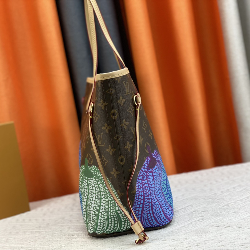 特別な「ルイ・ヴィトン × 草間彌生」コレクションに相応しくアップデートされた「LV × YK ネヴァーフル MM」。著名な日本人アーティスト 草間彌生が作品に繰り返し用いているテーマから着想を得たプリントがあしらわれています。カボチャの温もりと愛嬌のある姿に、長年魅了されてきた草間。メゾンのアイコニックなモノグラム・キャンバスに、鮮やかな色合いの「パンプキン」のモチーフをあしらい、「ドット」のモチーフで彩りました。クリエイティビティとクラフツマンシップが薫る、実用的なバッグです。