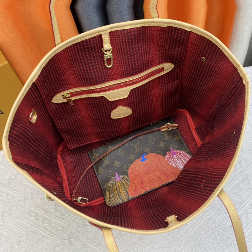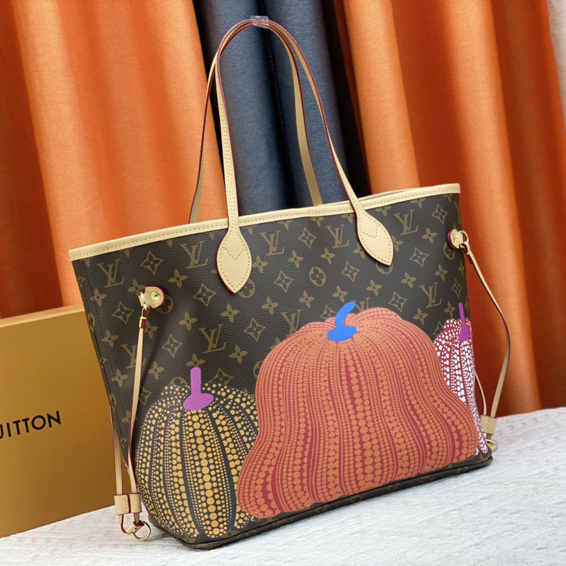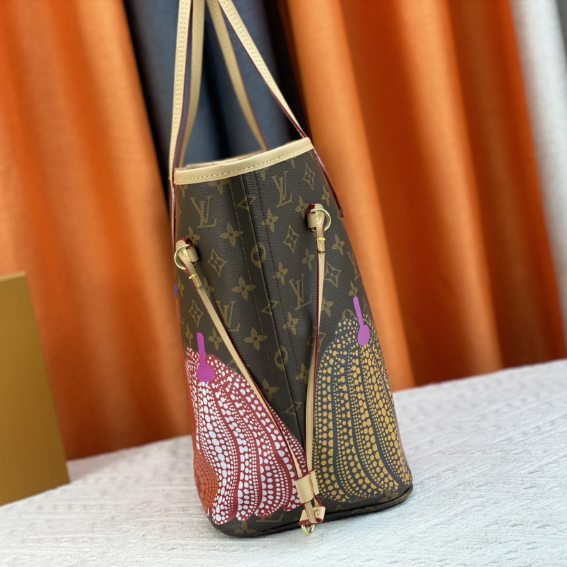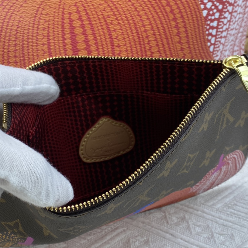 特別な「ルイ・ヴィトン × 草間彌生」コレクションに相応しくアップデートされた「LV × YK ネヴァーフル MM」。著名な日本人アーティスト 草間彌生が作品に繰り返し用いているテーマから着想を得たプリントがあしらわれています。カボチャの温もりと愛嬌のある姿に、長年魅了されてきた草間。メゾンのアイコニックなモノグラム・キャンバスに、鮮やかな色合いの「パンプキン」のモチーフをあしらい、「ドット」のモチーフで彩りました。クリエイティビティとクラフツマンシップが薫る、実用的なバッグです。