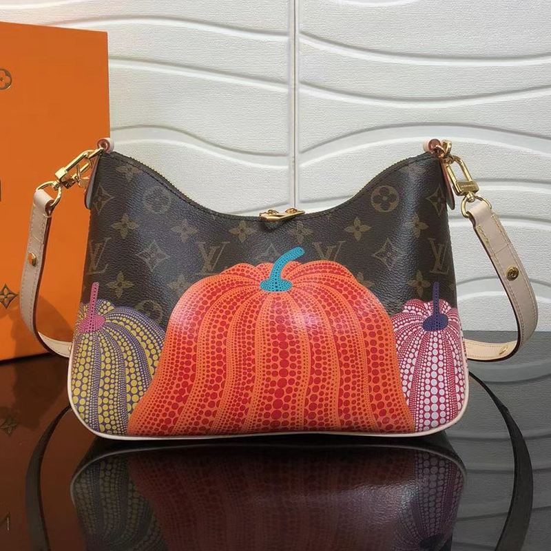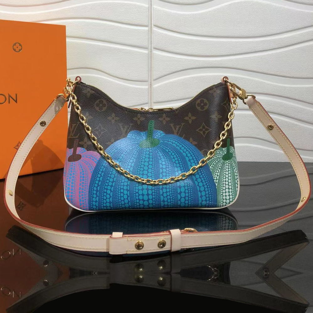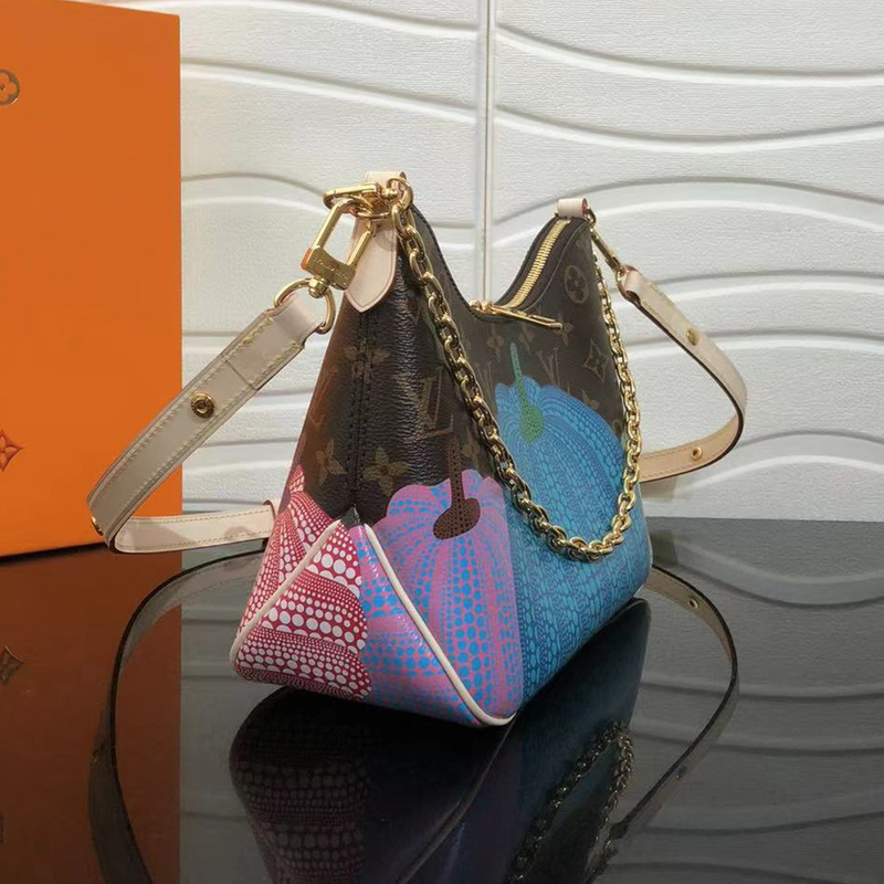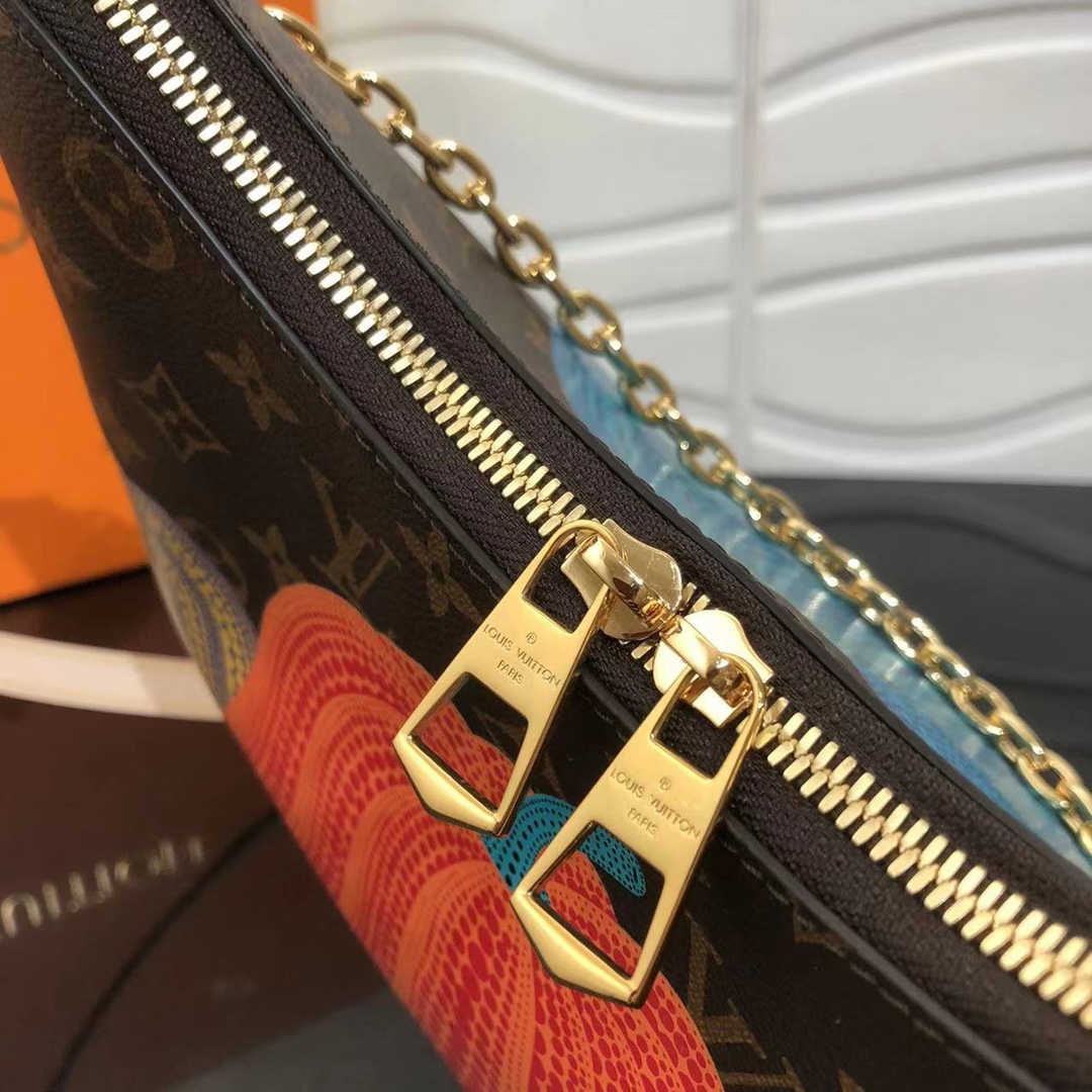「ルイ・ヴィトン × 草間彌生」コラボレーションの新作コレクションに相応しく、アップビートかつクリエイティブ、エネルギー溢れる表情で再解釈した「LV × YK ブーローニュ NM」。著名な日本人アーティスト 草間彌生は、カボチャを温もりと心地良い楽観主義のシンボルと捉え、絵画や彫刻、インスタレーションに用いてきました。メゾンのアイコニックなモノグラム・キャンバスにプリントしたカラフルな「パンプキン」のモチーフが、スタイリッシュで持ち運びやすいバッグを、ウェアラブルなアート作品へと変身させています。