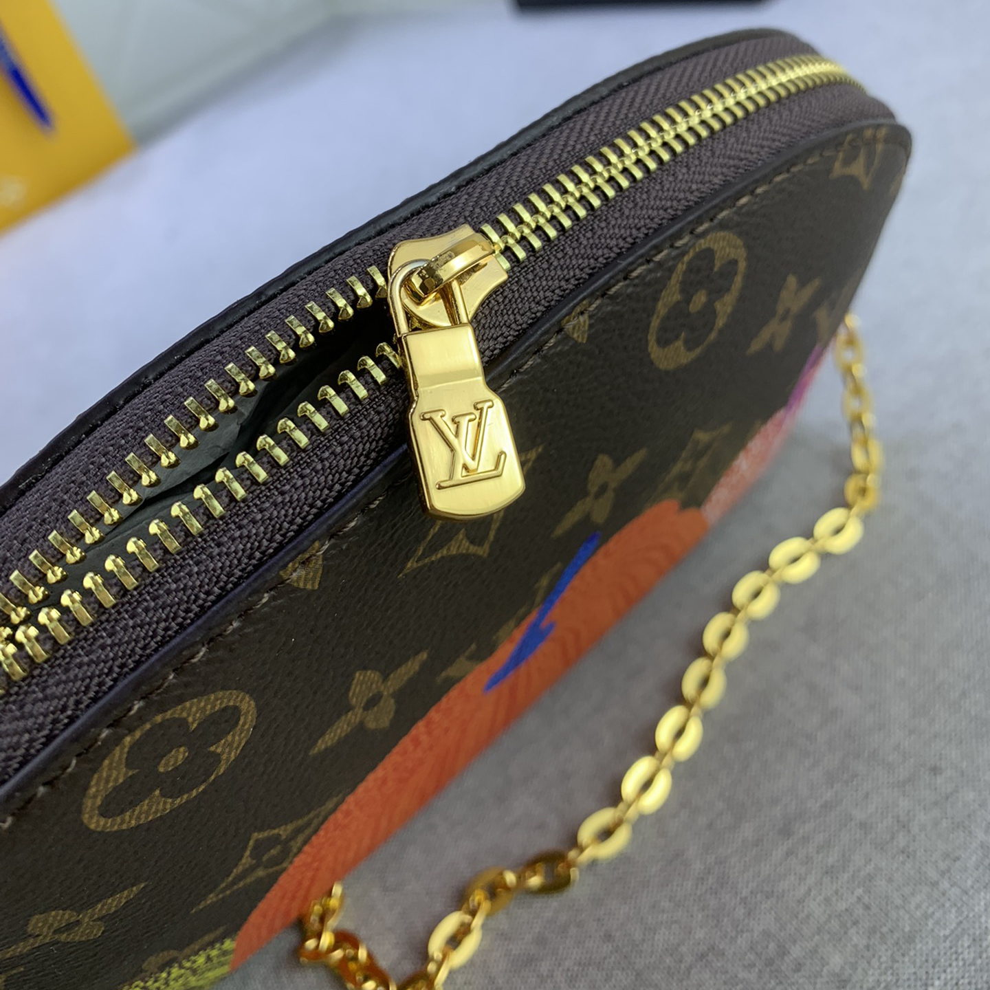 製品仕様 24 x 17 x 6 cm (幅 x 高さ x マチ) モノグラム・キャンバス 化粧用ポーチ ライニング(素材:ウオッシャブル・テキスタイル) 金具(色:ゴールド) ラップラウンドのファスナー開閉式 内ポケット3つ(パッチポケット2つ、リップスティック用ポケット)