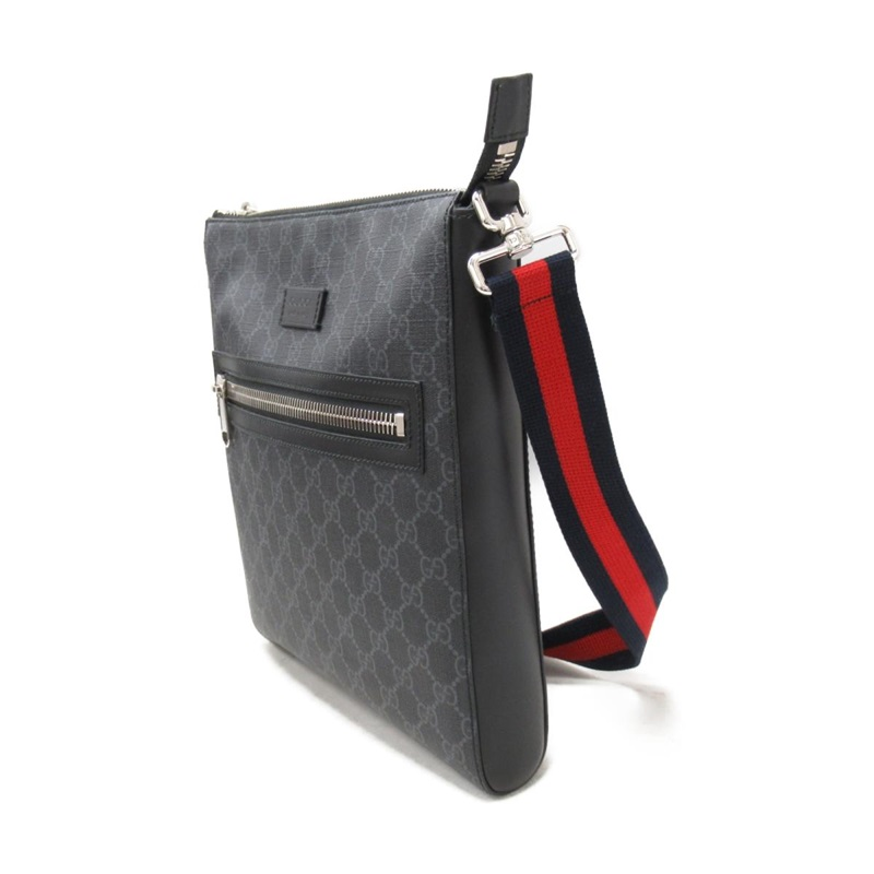 ブラック/グレー GGスプリーム キャンバス(環境に配慮した製法による素材)に、ブラック レザー トリムブルー/レッド/ブルー ウェブ ストラップパラジウムトーン ハードウェアグッチ トレードマーク レザータグ ディテールフロント ジップポケットインナージップポケット、スマートフォン用インナーポケット調節可能なナイロン ストラップ(ストラップの高さ:52 cm)、レザー ショルダーパッドジップ クロージャー幅27 x 高さ28.5 x マチ5 cmブラック コットンリネン ライニング