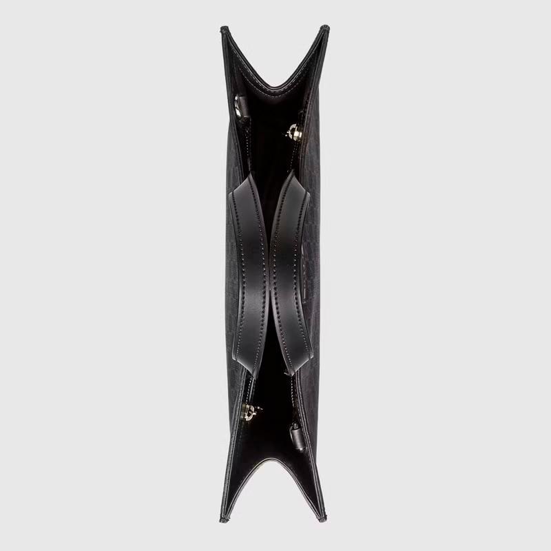 マイクロファイバーファブリックにコーティングを施したブラック/グレー ソフト GGスプリーム キャンバスに、ブラック レザー トリム