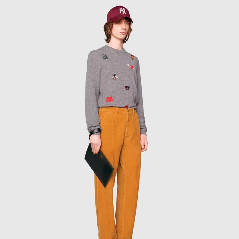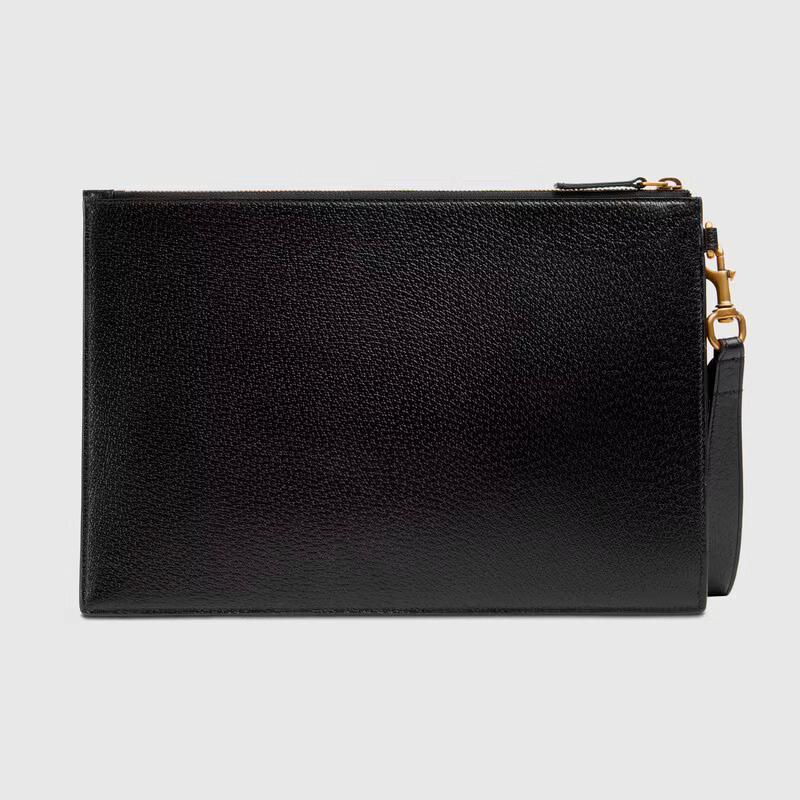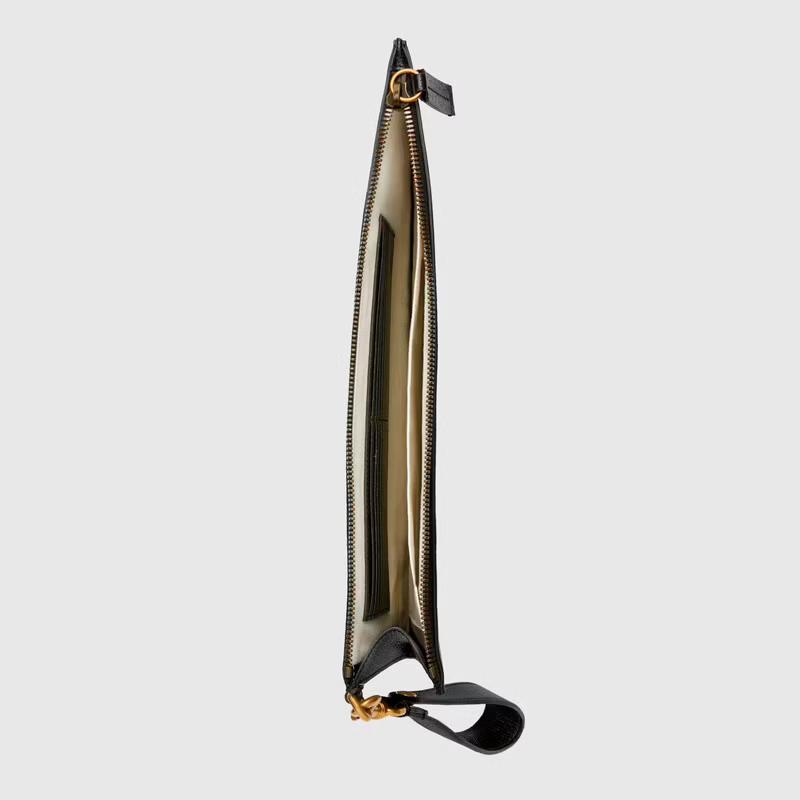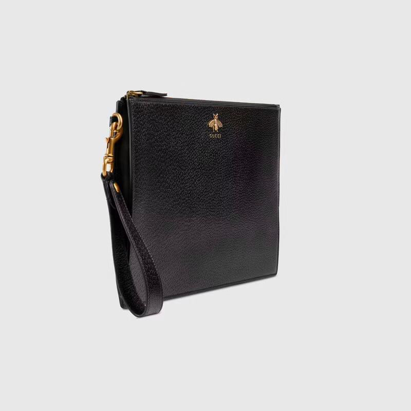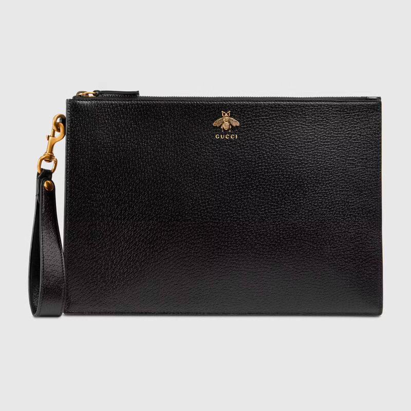 メタル ビー(ハチ)のディテールが施された〔アニマリエ〕レザー ポーチ。ビー(ハチ)は1970年代にグッチのウェアで初めて使われたアーカイブモチーフです。
