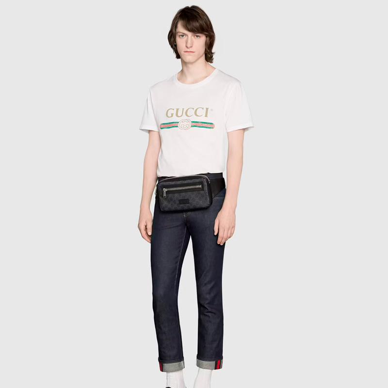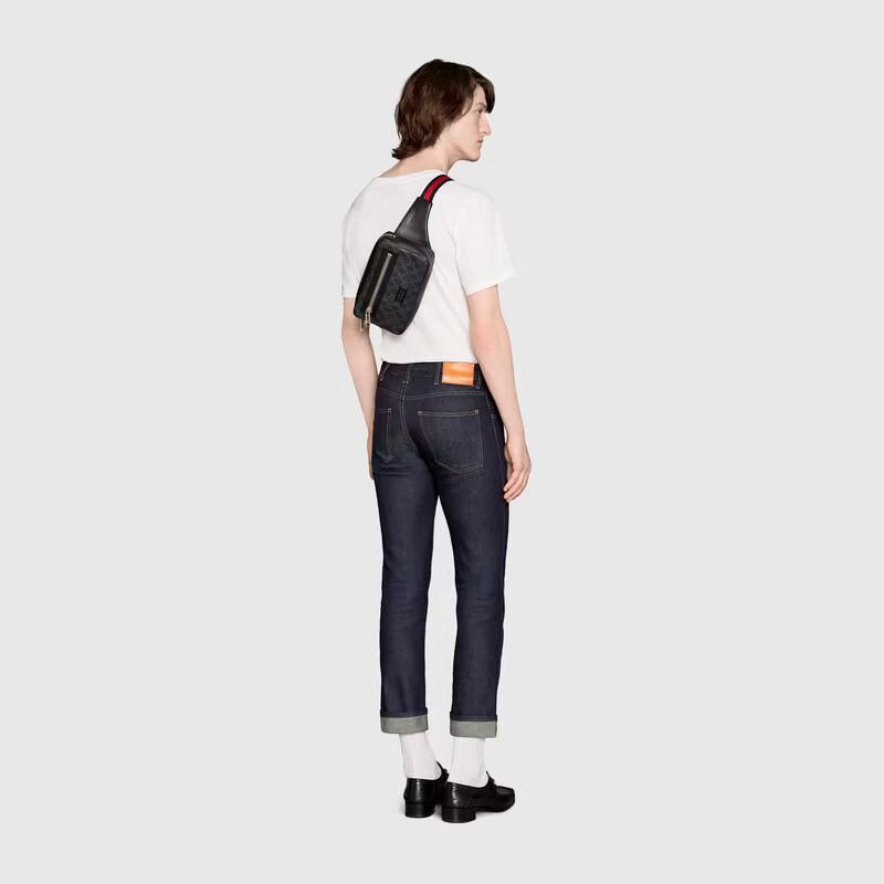 驚くほどしなやかなソフト GGスプリームのスモール ポーチ。調節可能なウェストストラップにはブルー/レッド/ブルーのグッチを象徴するウェブ ストライプがあしらわれています。