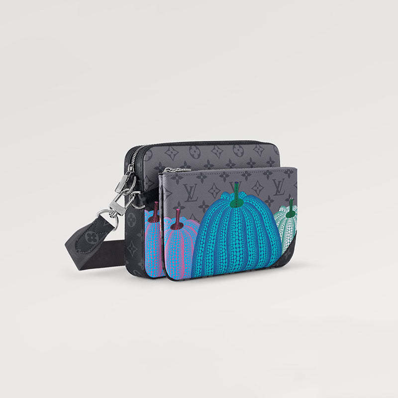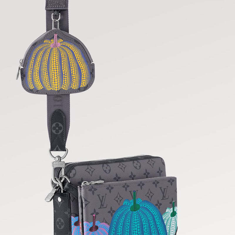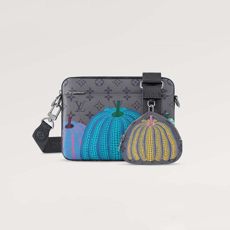 「ルイ・ヴィトン × 草間彌生」コラボレーションの新作コレクションならではの陽気な美学が光る、この上なく機能的な「LV × YK トリオ・メッセンジャー」。著名な日本人アーティスト 草間彌生が繰り返し用いてきたテーマであるカボチャ──メゾンのアイコニックなモノグラム・エクリプス リバース キャンバスに、マルチカラーの「パンプキン」のモチーフをプリントしました。取外し可能なファスナー付きポーチと、独立した「パンプキン」のモチーフのコインパースを備えています。印象的でクリエイティビティ溢れるデザインながら、実用的でさまざまなスタイルをお楽しみいただけるバッグです。