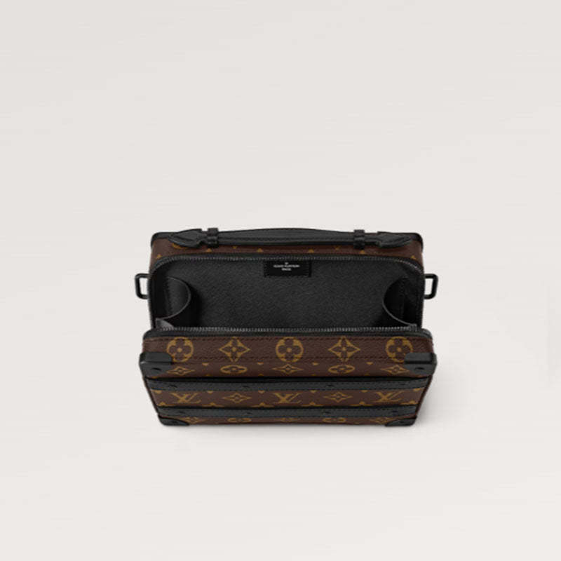 ルイ・ヴィトンを象徴するモノグラム・マカサー キャンバスで仕立てた「ハンドル・ソフトトランク」。コーナー部分のリベットや、レザー製の補強ストリップなどの洗練されたディテールが、トランクメーカーとして創業したメゾンのルーツを彷彿させます。スリムなシルエットと、取外し可能なストラップで持ち運びやすく、広い間口で中身をすぐに取出せるのも魅力。小型のデジタル機器などの生活必需品を収納するのにも最適です。