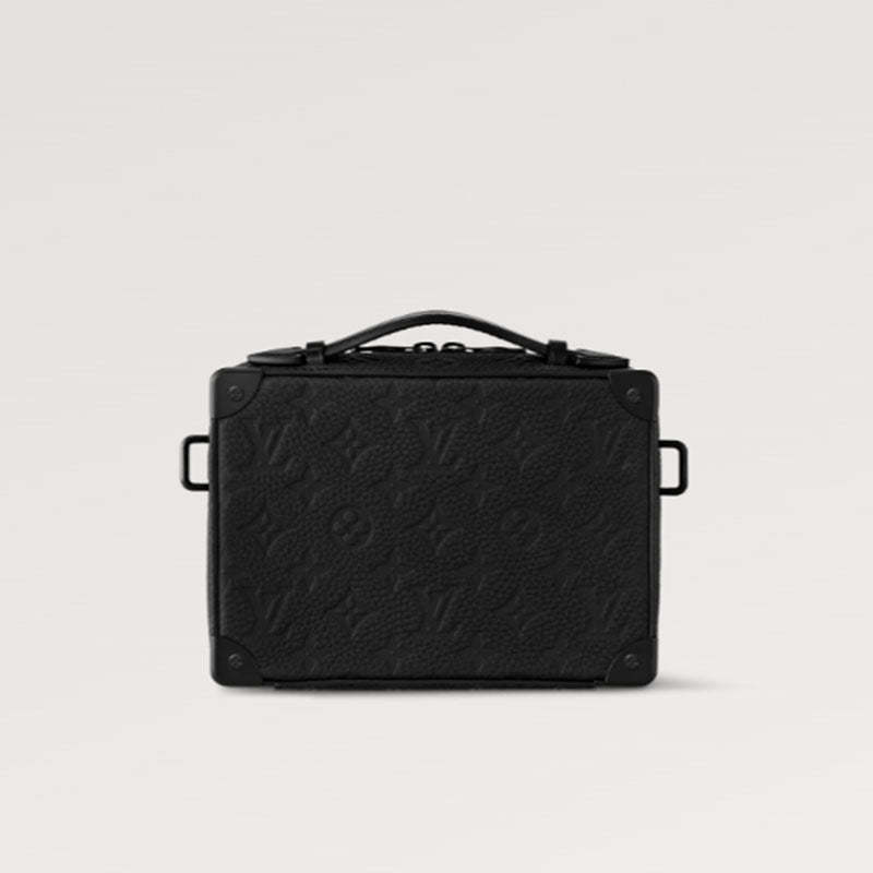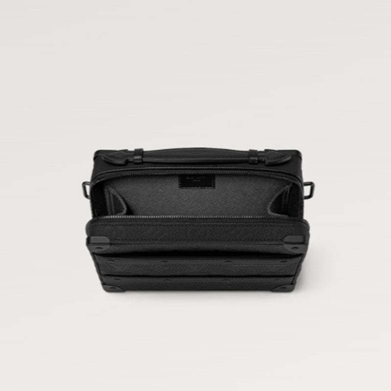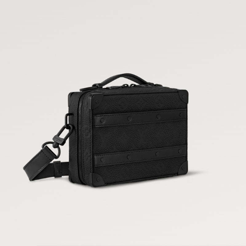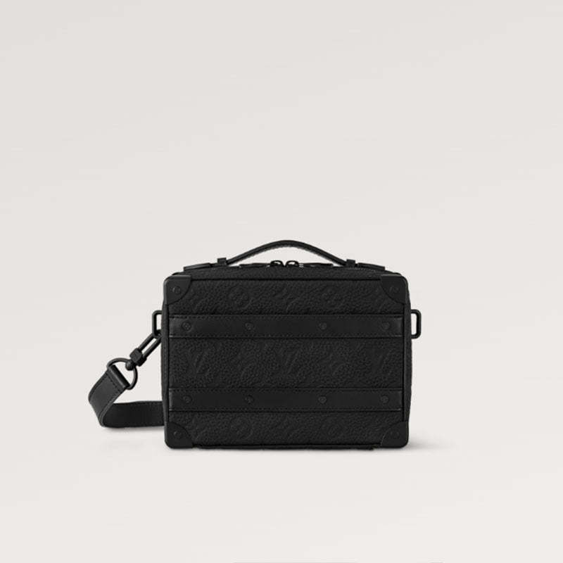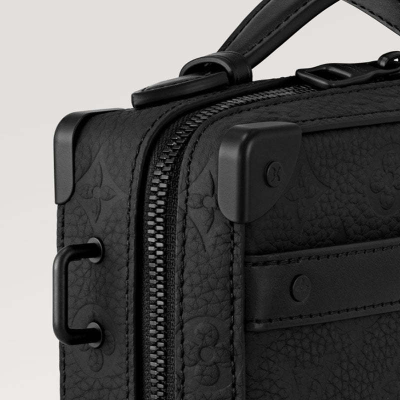 モノグラム・パターンを精緻にエンボス加工したトリヨンレザーで仕立てた「ハンドル・ソフトトランク」。コーナー部分のリベットや、レザー製の補強ストリップなどの洗練されたディテールが、トランクメーカーとして創業したメゾンのルーツを彷彿させます。スリムなシルエットと、取外し可能なストラップで持ち運びやすく、広い間口で中身をすぐに取出せるのも魅力。小型のデジタル機器などの生活必需品を収納するのにも最適です。