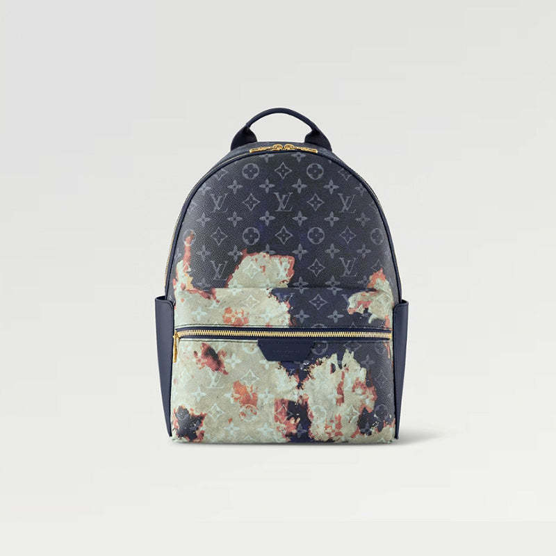 2024春夏コレクションの「焚き火」のテーマから着想を得た「ディスカバリー・バックパック PM」。モノグラム・ブリーチ キャンバスが、エッジィでエレガントな雰囲気を演出します。夜空を彷彿させるダークブルーのモノグラム・キャンバスに、刻々と表情を変え、揺らめく炎を想わせる淡い色合いのモチーフを組み合わせました。ヴィンテージ調のゴールドカラーで仕上げたメタルパーツが、目を引くコントラストを織りなします。