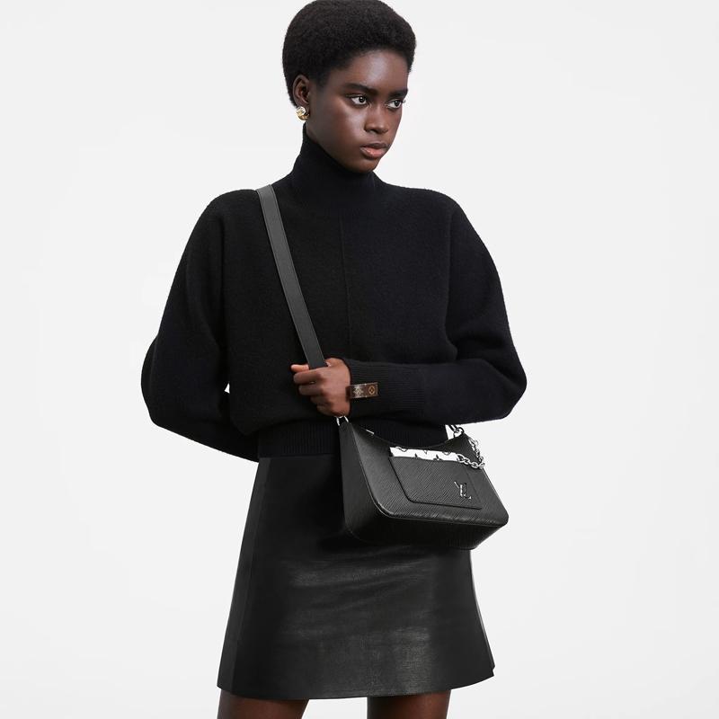 エピ・レザーで仕立てた「マレル」。バッグの外ポケットには、バッグ本体とチェーンで繋がった取外し可能なキャンバス素材のポーチも。また、取外し可能なトップハンドルで腕や肩に掛けたり手持ちしたりできるほか、長さ調節できるレザーストラップでクロスボディバッグとしてもお楽しみいただけます。