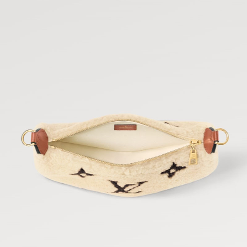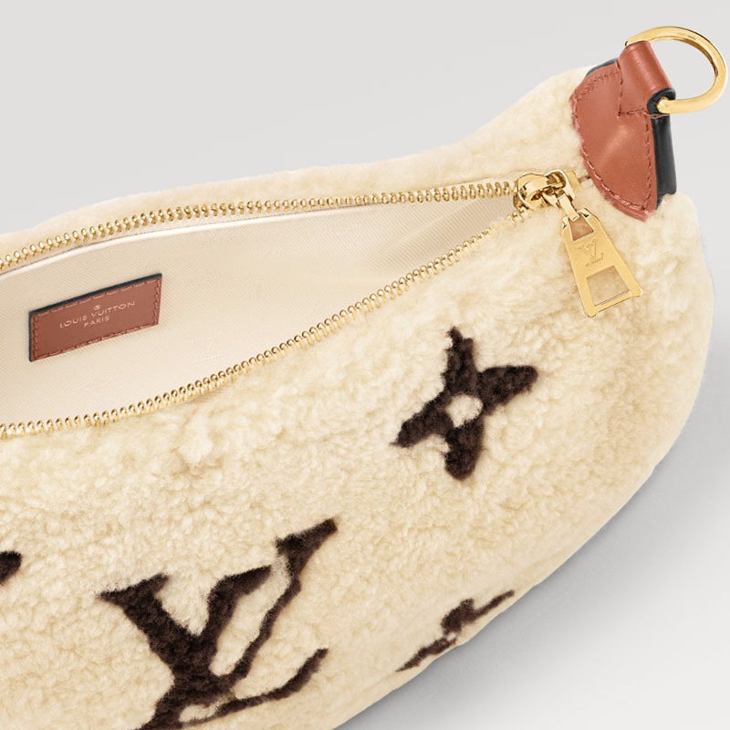 シアリングで極上の柔らかさに仕立てた、冬にぴったりのバッグ「オーバー ザ ムーン」。異なる色のシアリングを組み合わせて表現したモノグラム・ジャイアント パターンが特徴です。ゴールドカラーのチェーンと取外し & 調節可能なストラップ付きで、さまざまな持ち方をお楽しみいただけます。内側には、貴重品を収納できる大容量のフラットポケットをあしらいました。